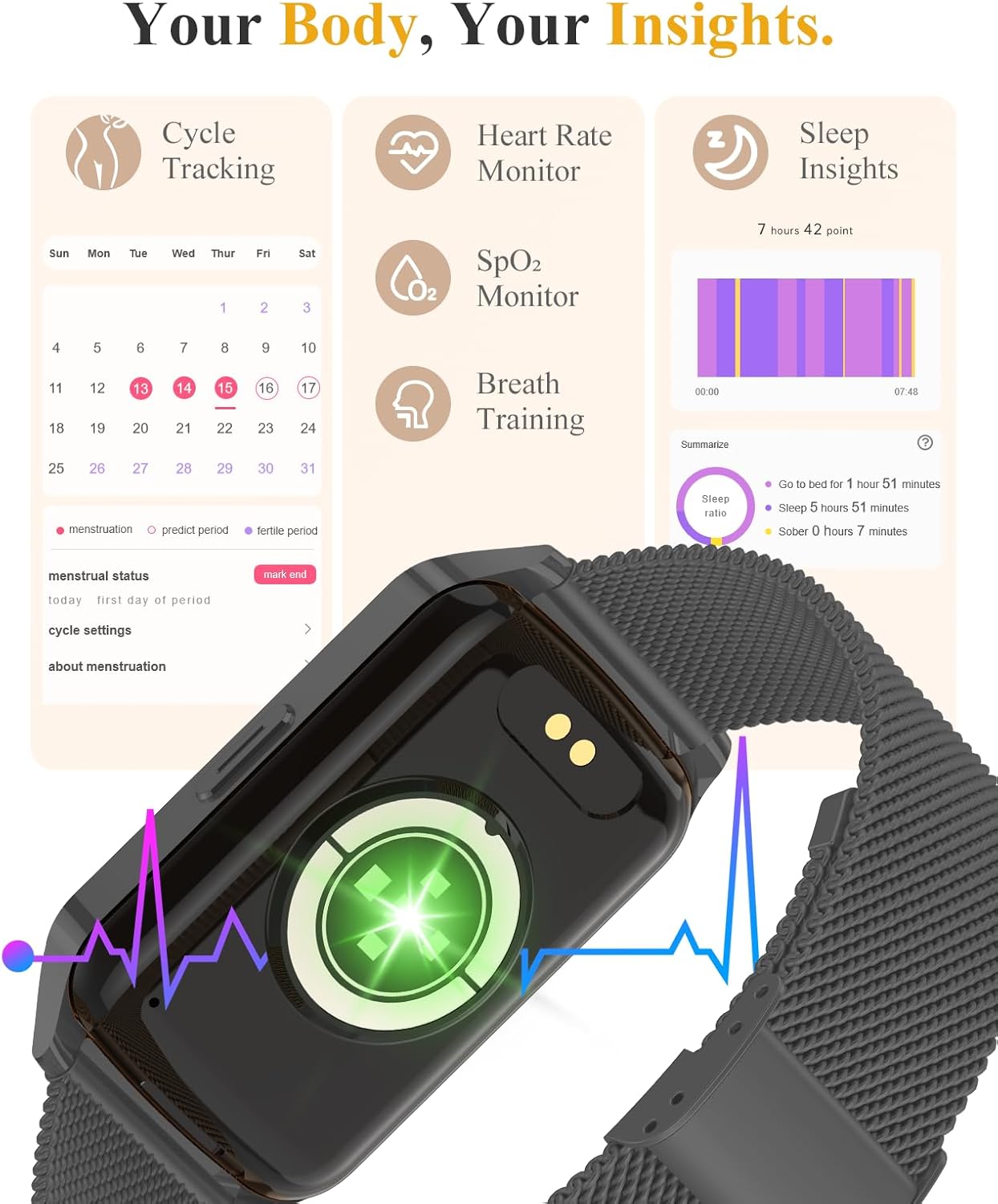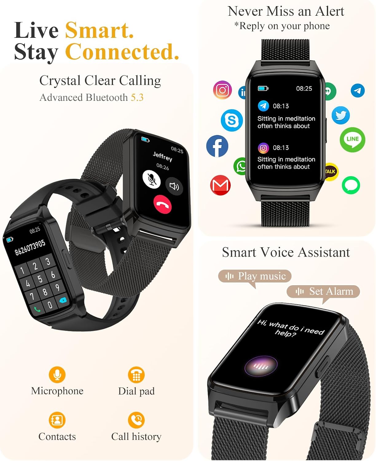 Two Styles, One Watch: Switch effortlessly between included sporty silicone and metal bands—ideal for workouts, office, or weekends. This sleek activity smartwatch blends fashion with function, making it a thoughtful present for anyone valuing versatile style