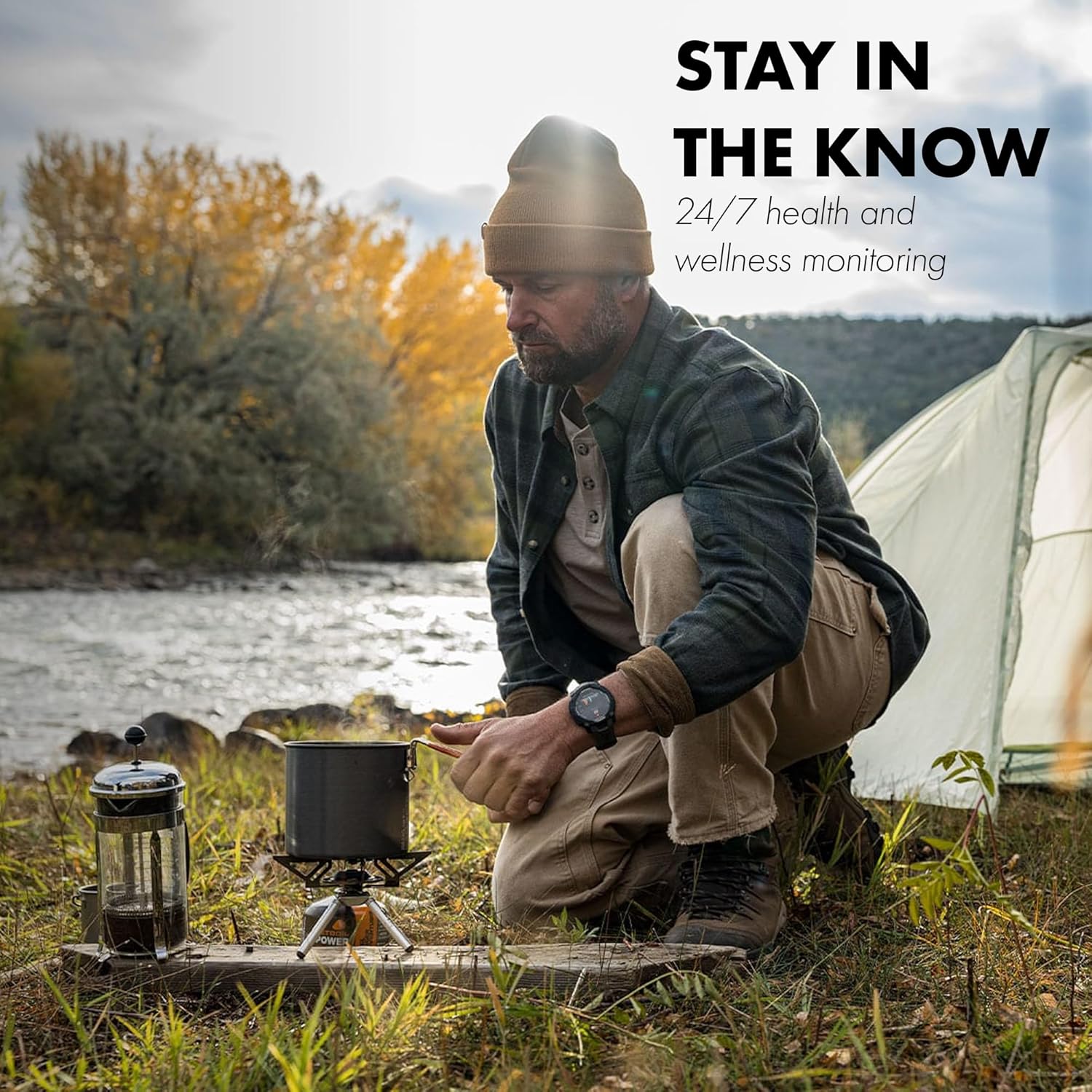 RUGGED DESIGN WITH METAL-REINFORCED BEZEL: The Instinct 3 Solar is engineered for extreme durability with a large 50 mm case, scratch-resistant display, and metal-reinforced bezel built to withstand challenging environments. Its tough construction is ideal for outdoor adventurers, hikers, and users who need a smartwatch that endures heat, cold, impact, water exposure, and unpredictable terrain without compromise.