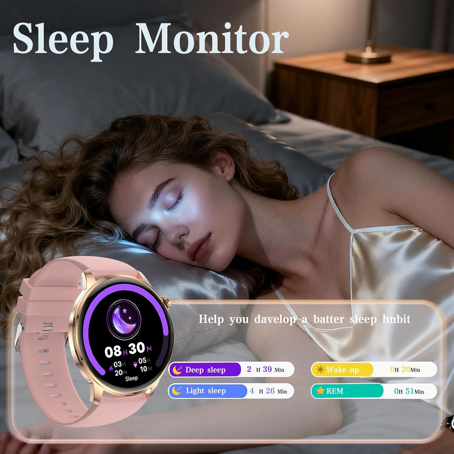【Health Monitor】: As a fitness tracker to tracks your vital health metrics—including blood oxygen levels, heart rate, and stress—around the clock. Additionally, it automatically monitors your sleep (deep sleep, light sleep, and wakefulness), helping you stay informed about your sleep quality and overall health at any time.
