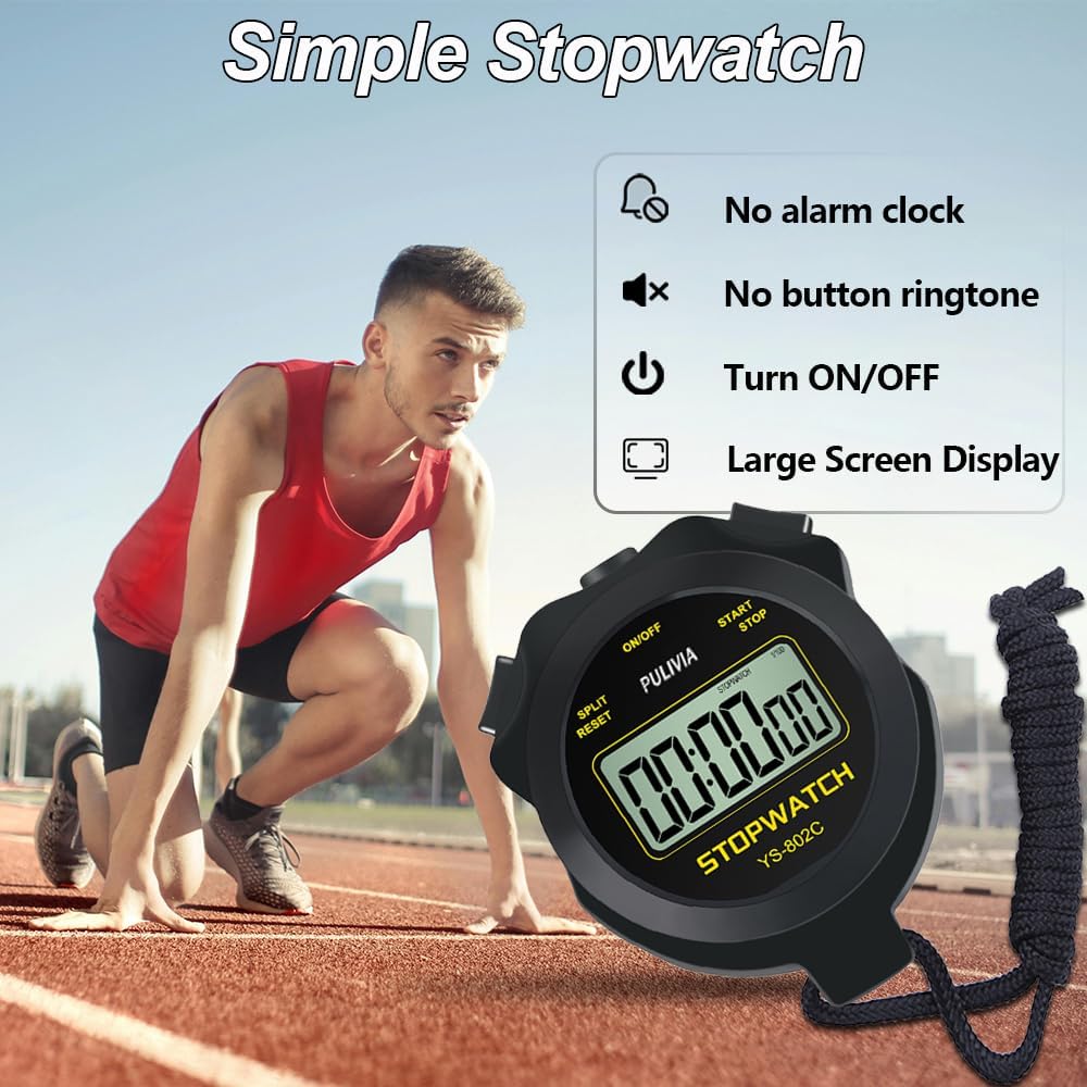 Digital Stopwatch Timer Only Stopwatch with ON/Off, NO Bell No Whistle Silent Basic Operation Children Friendly, PULIVIA Sport Stop Watch for Coaches Kids Swimming Running