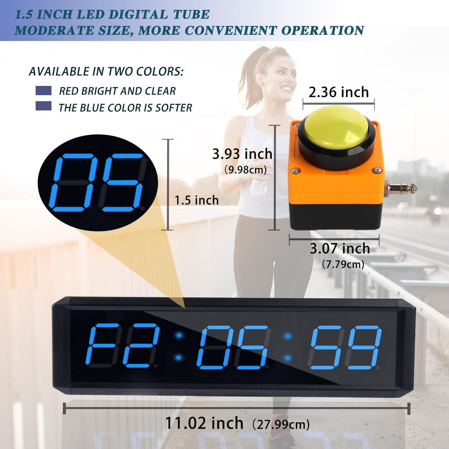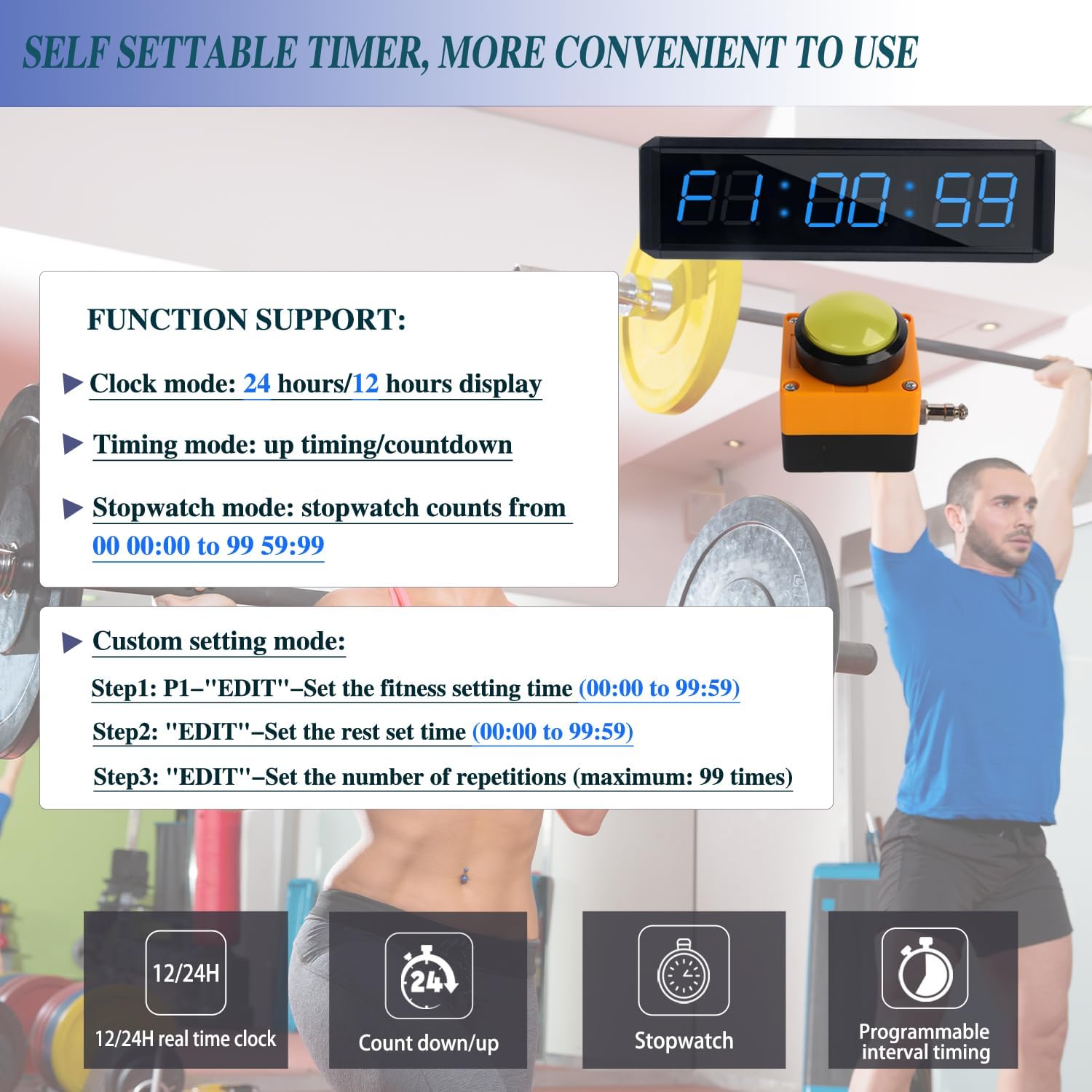 Interval timer: upgraded multi-function timer, supporting 12-hour and 24-hour real-time clock, countdown, timing, stopwatch, custom interval mode, and equipped with stopwatch switch button. The external button power cord is extended to 98 inches (250CM), suitable for more scenarios