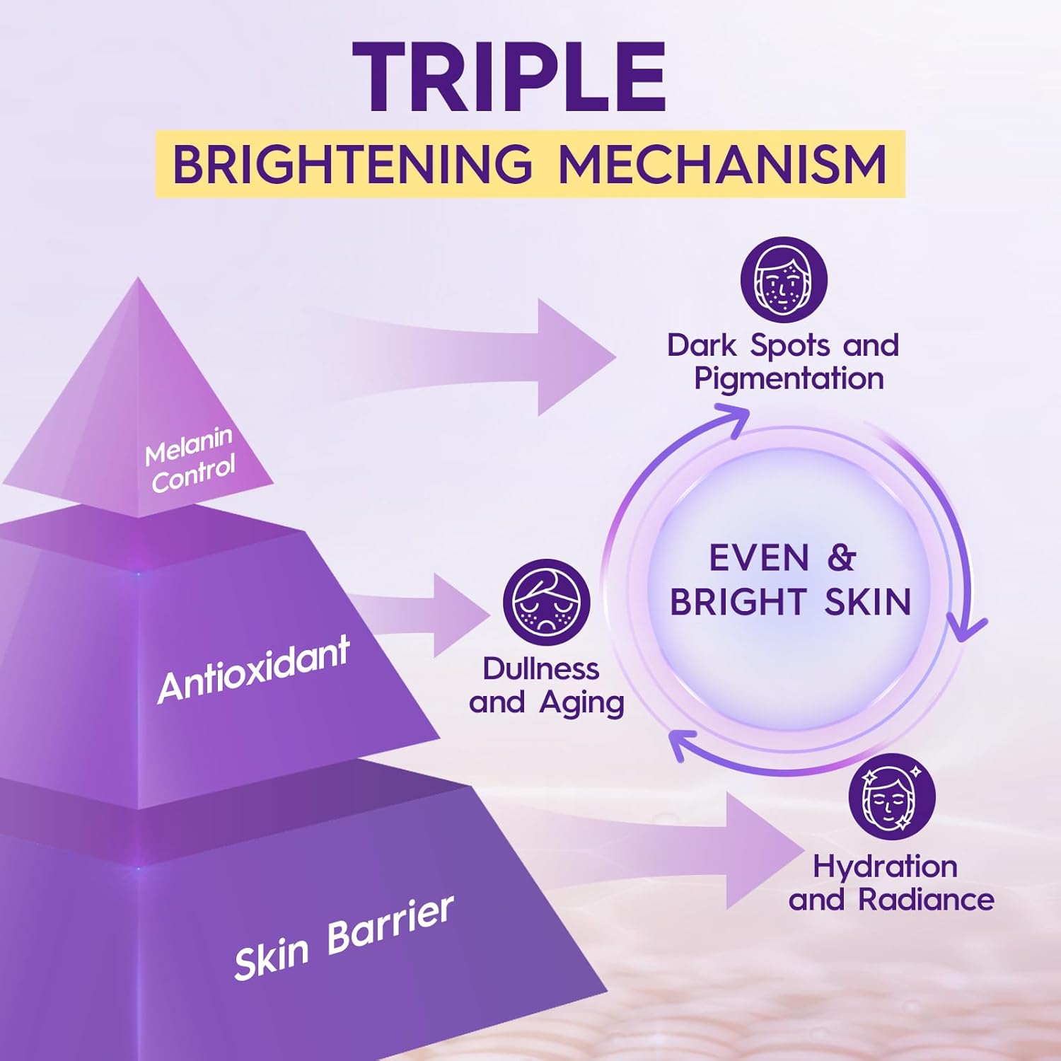 Triple-Action Brightening Mechanism: Vitamin C and Niacinamide address dark spots and uneven tone, Glutathione and Licorice Extract provide antioxidant care, while Hyaluronic Acid and Marine Collagen restore moisture and reinforce the skin’s barrier appearance—resulting in a smoother, more radiant look