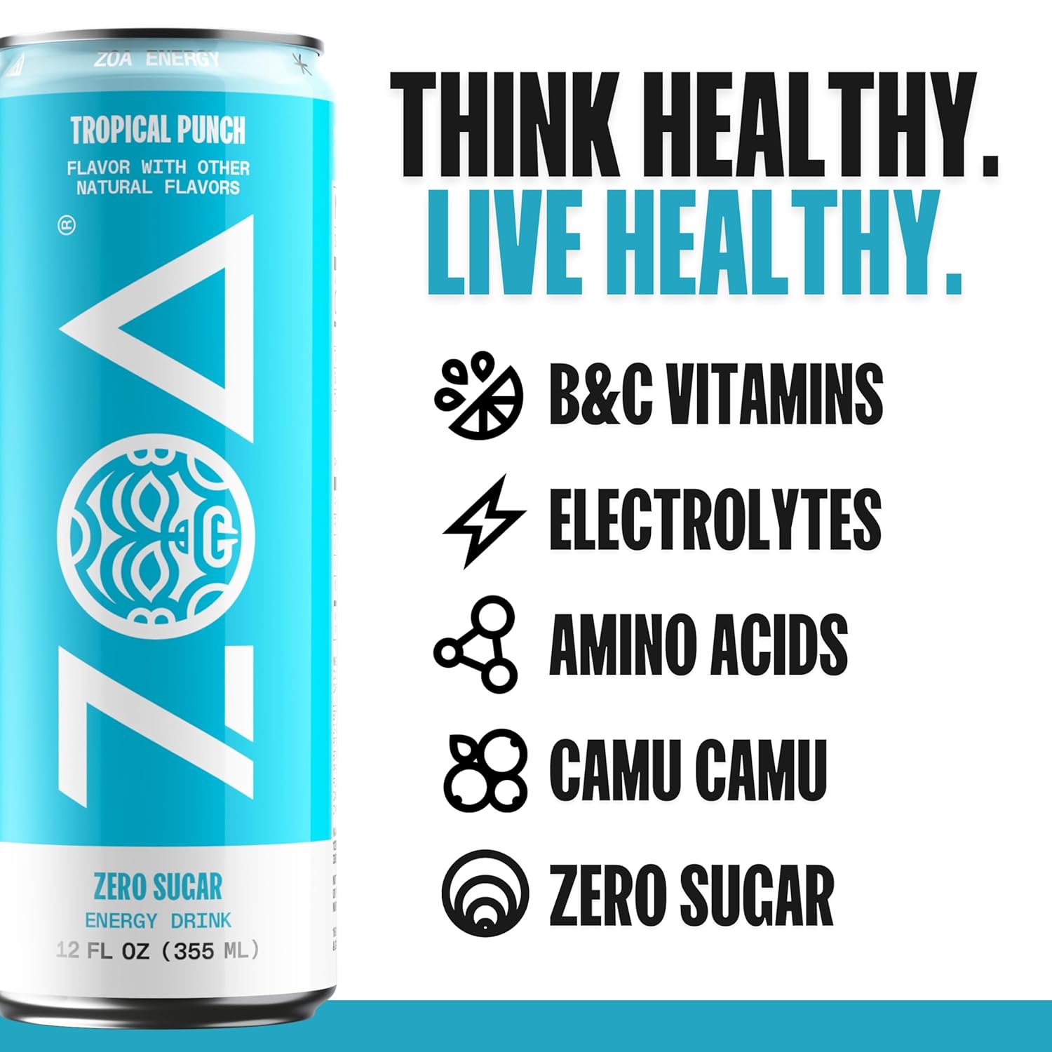 Be the first to review “ZOA Zero Sugar Energy Drinks, Tropical Punch – Sugar Free with Electrolytes, Healthy Vitamin C, Amino Acids, Essential B-Vitamins, and Caffeine from Green Tea – 12 Fl Oz (12-Pack)”