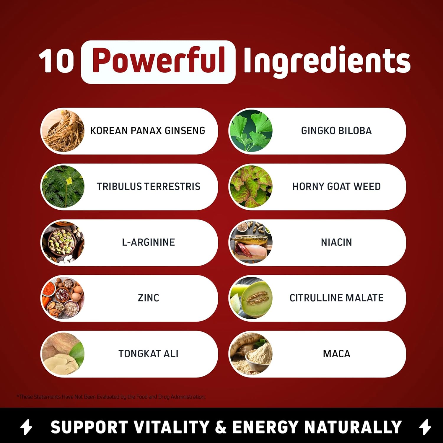 Powerful 10-in-1 Formula: A potent blend featuring Korean Panax Ginseng, Tribulus Terrestris, Zinc, Tongkat Ali, Horny Goat Weed, Maca, and more – designed to support vitality, energy, and healthy hormone balance.