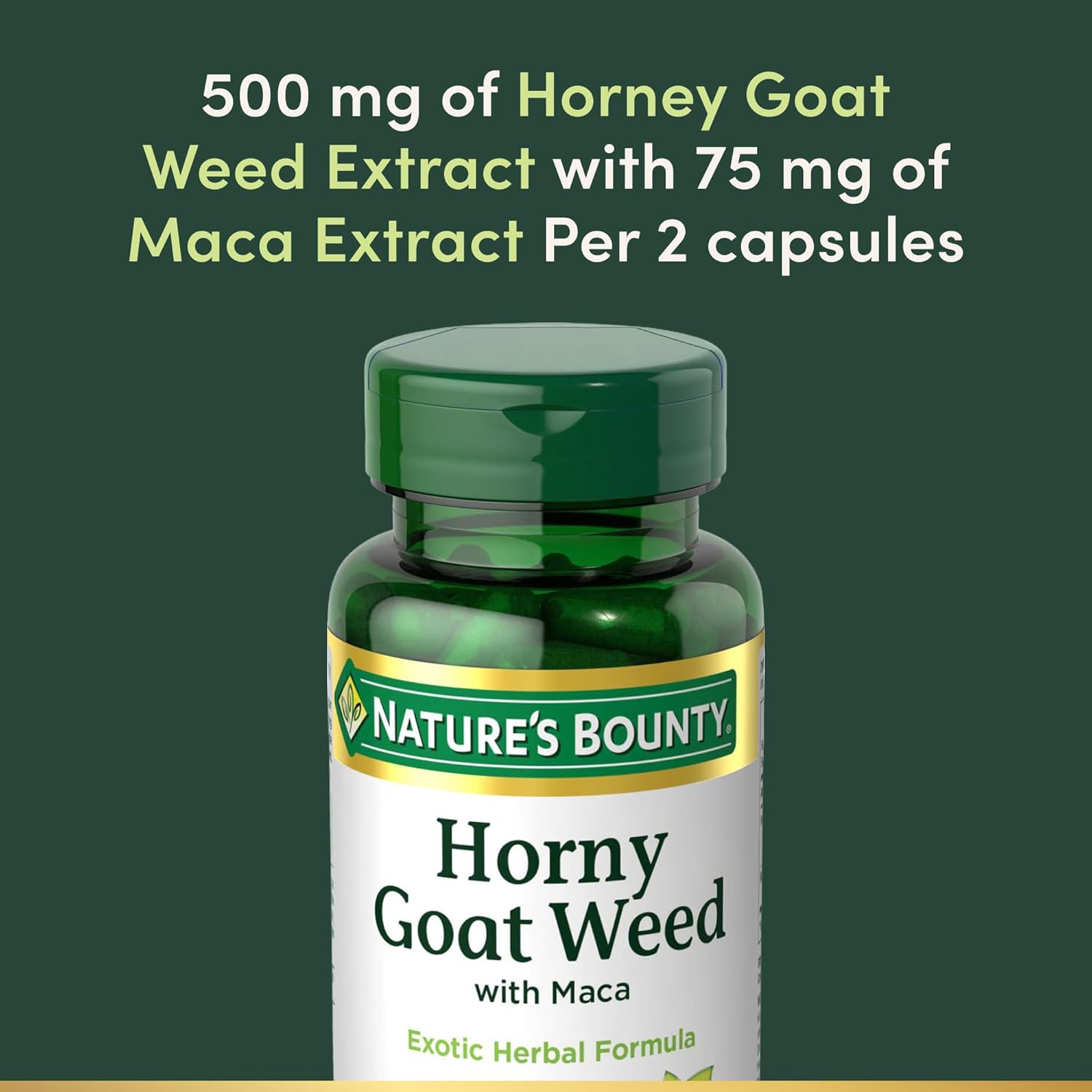 Nature’s Bounty Horny Goat Weed with Maca, Herbal Health Supplement, 60 Capsules