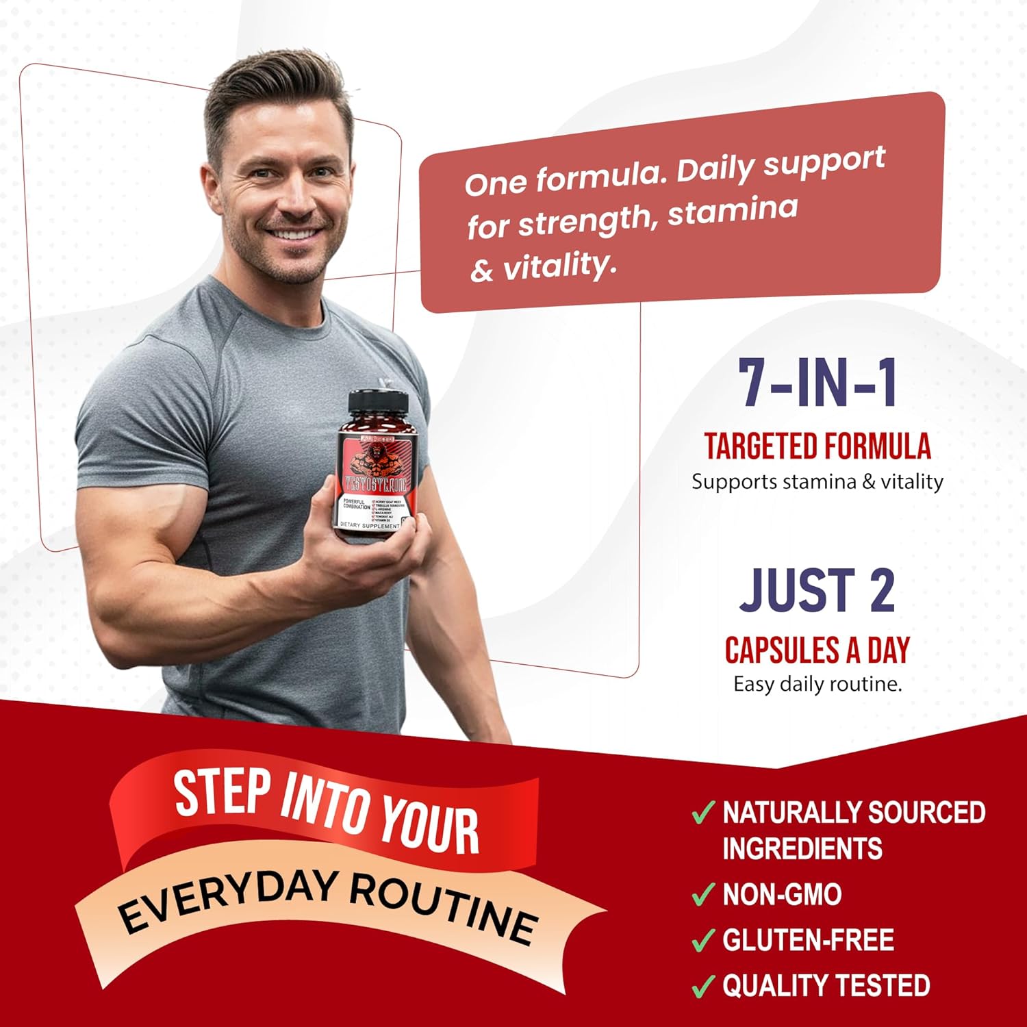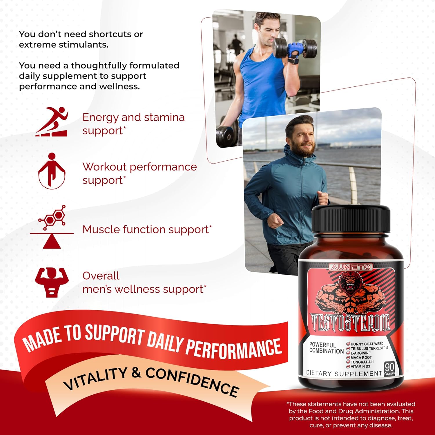 Herbal Wellness Formula for Men: Contains Tribulus, Tongkat Ali, Maca Root, L-Arginine, and Vitamin D3 to help support men’s daily vitality and general well-being.*