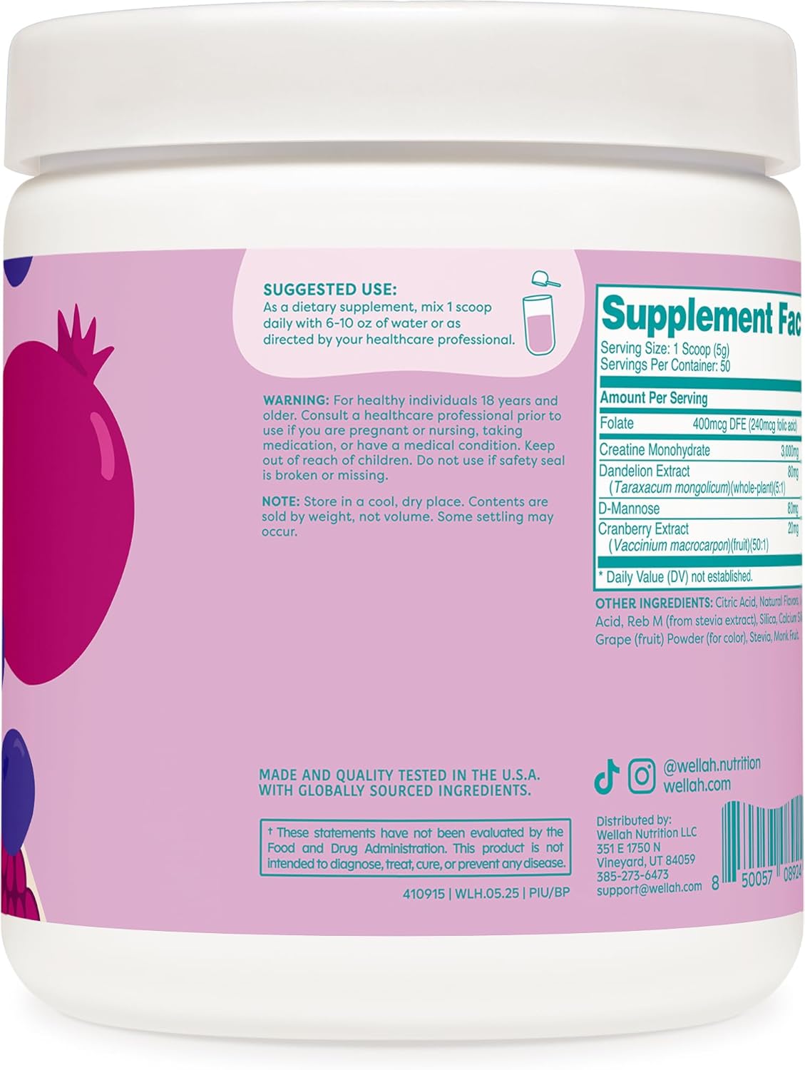 Be the first to review “Wellah Creatine for Women – Creatine Monohydrate with Dandelion & Cranberry Extract (50 Servings, Blueberry Pomegranate)”