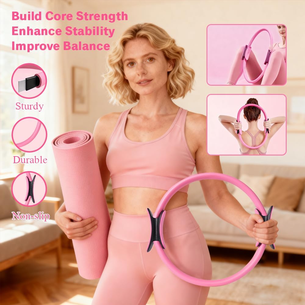 Experience the ultimate pilates equipment for home with our complete pilates ring set designed for full-body workouts, flexibility training, and core strengthening. This premium home pilates equipment kit includes a durable Pilates ring and weights, an anti-burst pilates ball kit, multiple resistance bands, and stretching accessories—everything you need in one pilates starter kit for women or beginners. Crafted from high-elastic fiberglass and eco-friendly materials, our pilates ring and ankle weights and accessories are built to last. Whether you want a pilates kit with weights, a stylish pilates pink option, or an easy-to-use pilates kit for beginners, this set is perfect for at-home training, travel, or building your own home Pilates studio.