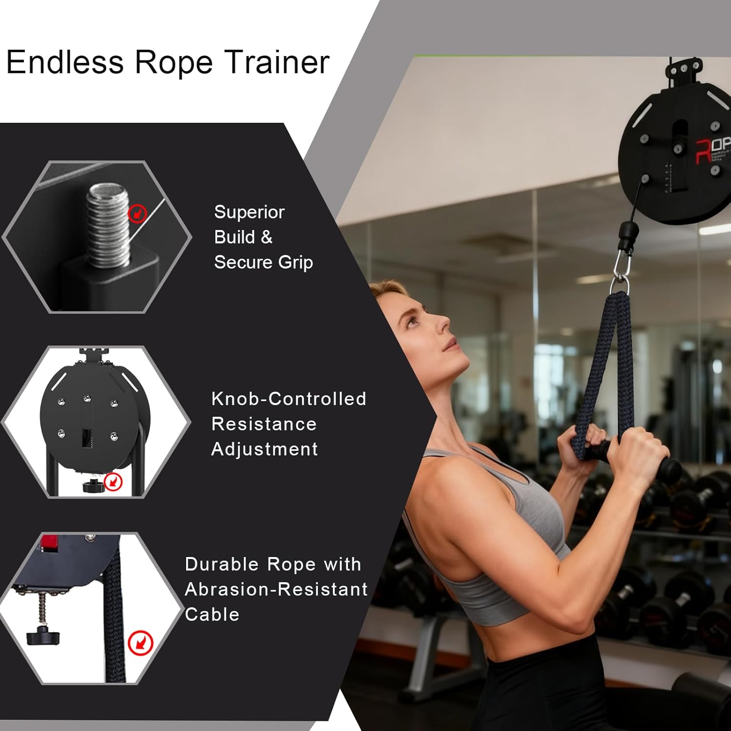 Experience the smooth and consistent resistance of our professionally engineered system. The durable metal pulleys ensure seamless movement, while the high-density nylon rope is built to withstand intense daily use. Unlike traditional equipment, the endless rope design provides a unique training modality that enhances muscular endurance, grip strength, and cardiovascular health simultaneously.