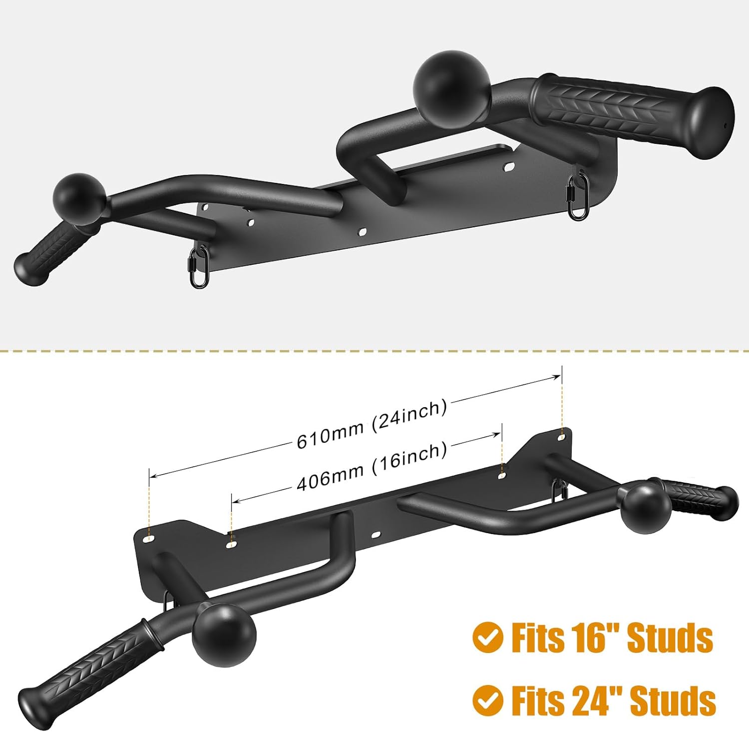 🏋️♂️【Stable and Safe Wall Mount】This pull-up bar features a unique 6-hole design on the triangular base plate, which distributes the pressure evenly. Unlike other pull up bars with only 3 or 4 holes, our pull up bar offers more stability and safety for your exercise. It can support up to 440 lbs of weight without wobbling or shaking
