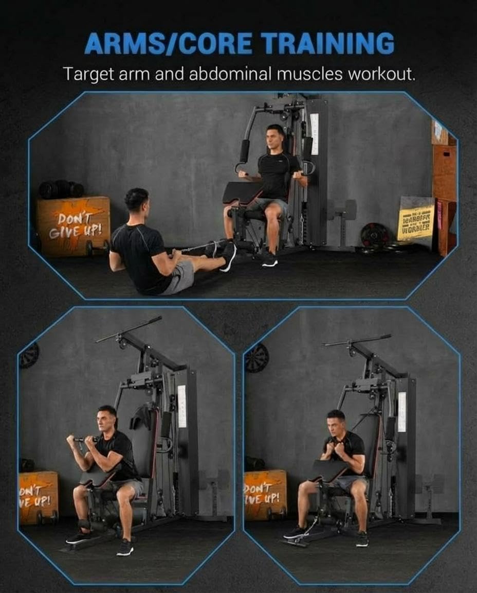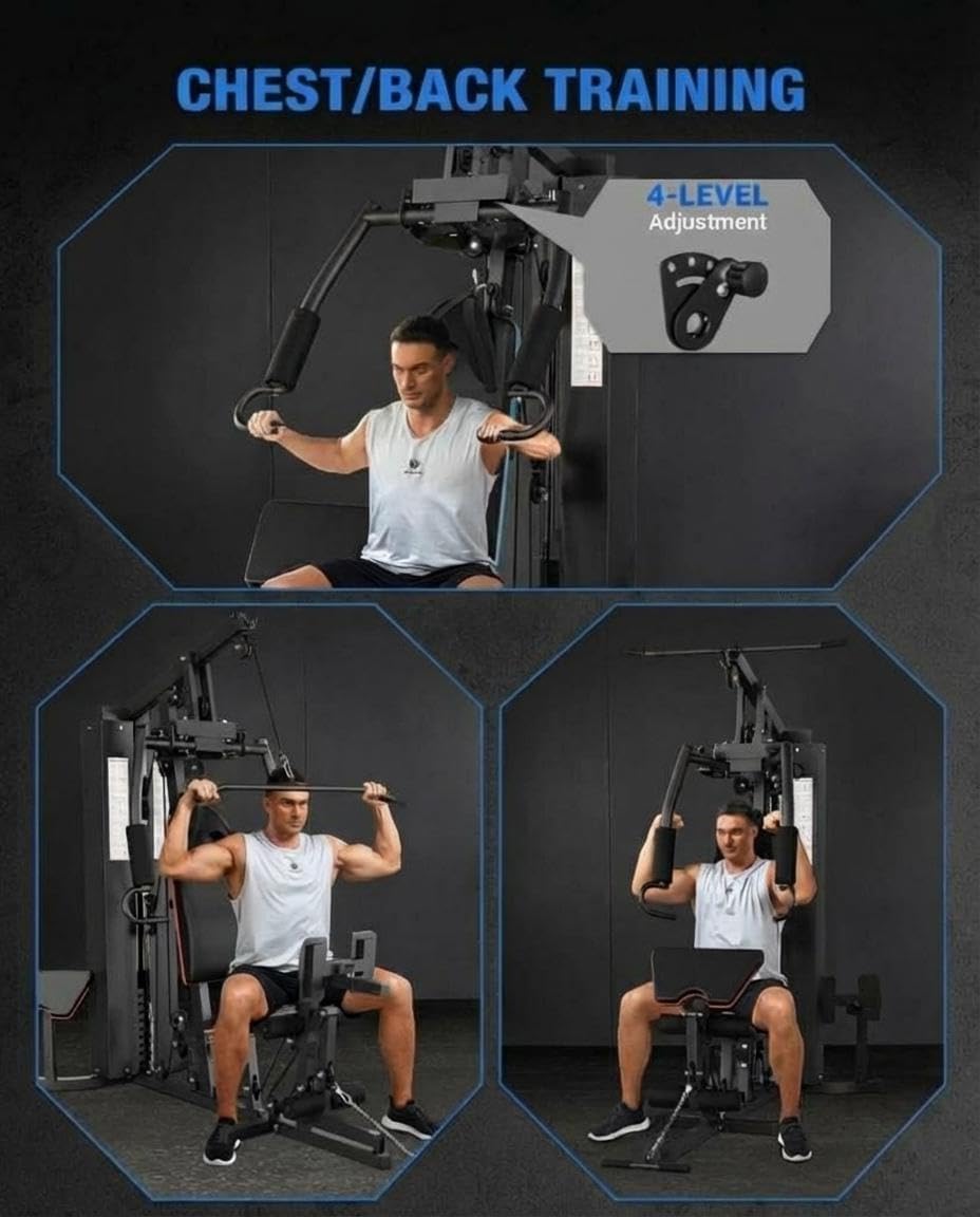 【Commercial-Grade Steel Construction】Built with reinforced 2″×2.75″ steel framing and 1.5mm thickness, this home gym machine delivers rock-solid stability during intense workouts. The chrome-plated finish resists rust and wear, while the enclosed weight stack ensures safe, quiet operation year after year.