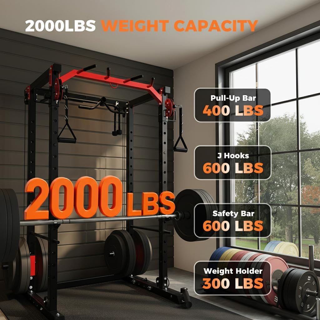 Be the first to review “Power Cage, Power Rack with Cable Crossover System, 2000LBS Squat Rack with LAT Pull Down System, Workout Cage with Pulley System for Fitness Home Gym Strength Training”