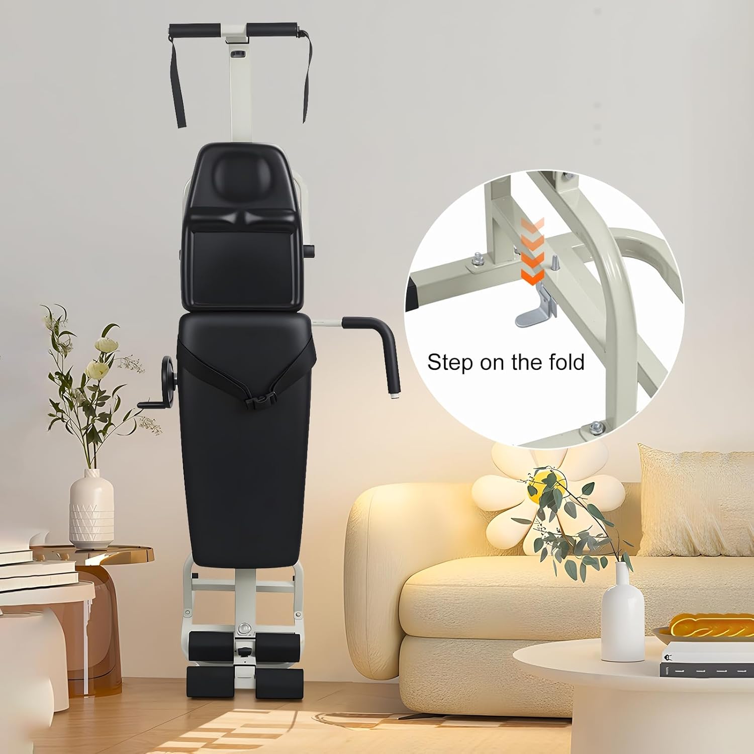 Compact & Space-Efficient Design: Ideal for homes, offices, or small spaces, this inverted table for back pain is designed to be compact and space-saving. Its ability to be stored upright when not in use makes it perfect for areas with limited space. Use it conveniently in your living room, bedroom, or even in a gym.