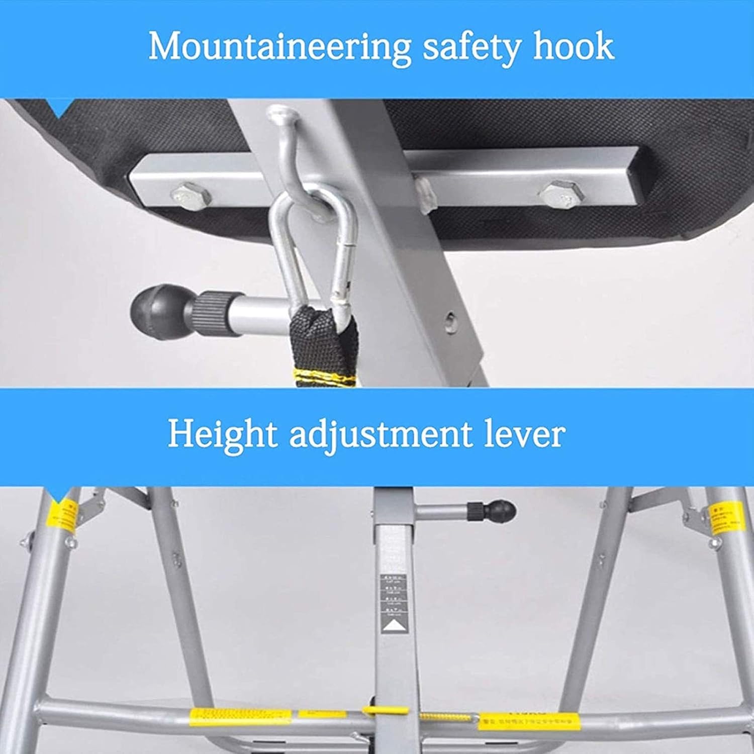 The angle of this inverted men’s chair can be adjusted as desired, up to about 270°. It can be locked by inserting a pin and a safe reversal is guaranteed; the height is adjustable, suitable for people with a height between 140 cm and 196 cm; 5-speed clamping device, flexible adjustment to the instep height.