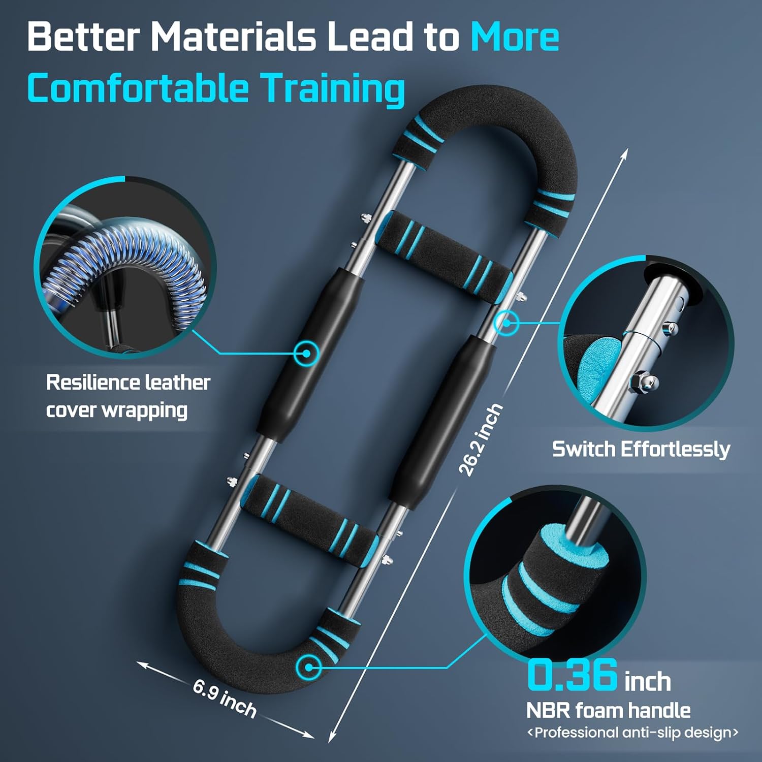 ๐๐ซ๐๐ข๐ง ๐๐ฆ๐๐ซ๐ญ๐๐ซ ๐ฐ๐ข๐ญ๐ก ๐๐ฎ๐ซ ๐๐ฎ๐๐ฅ ๐๐๐ฃ๐ฎ๐ฌ๐ญ๐๐๐ฅ๐ ๐๐๐ฌ๐ข๐ฌ๐ญ๐๐ง๐๐ ๐๐๐ซ๐ฌ:Arm trainer four removable sleeves let you customize tension from 65/90/110lbs for progressive workouts, chest workout equipment textured grip foam grips and three layer precision steel ensure safe, stable performance every session