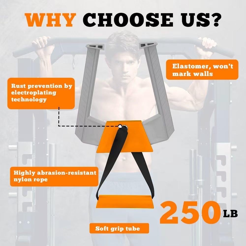 【High quality materials】: Our portable pull up bar is made of PP+PA material to ensure the durability of the product. The slot between it and the door frame is widened and thickened, providing strong grip and a load-bearing capacity of up to 250 pounds, allowing you to use it with peace of mind