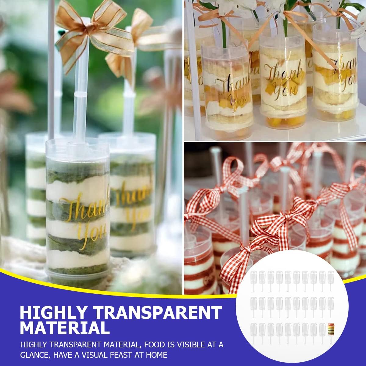 You will get 30pcs of Ice cream push- up containers with lids base and stick, weddings, birthday parties, bridal showers, anniversaries, home activities, afternoon teas, bake stores,great for cakes, ice-creams, jelly, cheesecake,you can use it DIY.Made of food grade clear APET plastic that is lightweight yet durable making it easy to take from place to place. This size is suitble to hold cheese, cakes, chocolates, puddings and are perfect for picnics, weddings and parties. Since the clear lid, you will have an excellent view of the entire product!