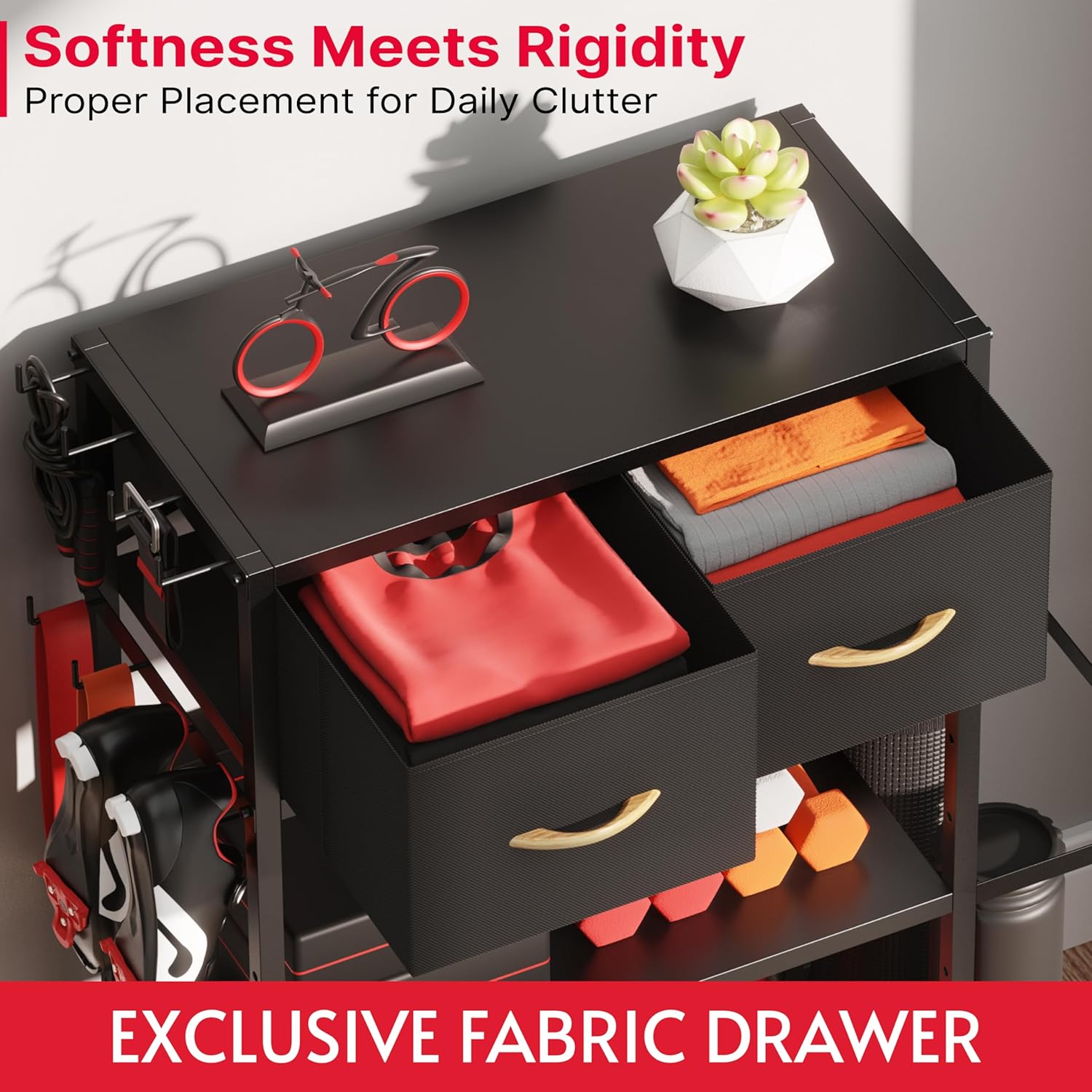 Exclusive Fabric Drawer – Experience a cozy workout environment with Crostice gym storage stand; more than just a storage solution, extra drawer is uniquely designed for who values the simple, cleanliness to storage their workout suit, gym accessories