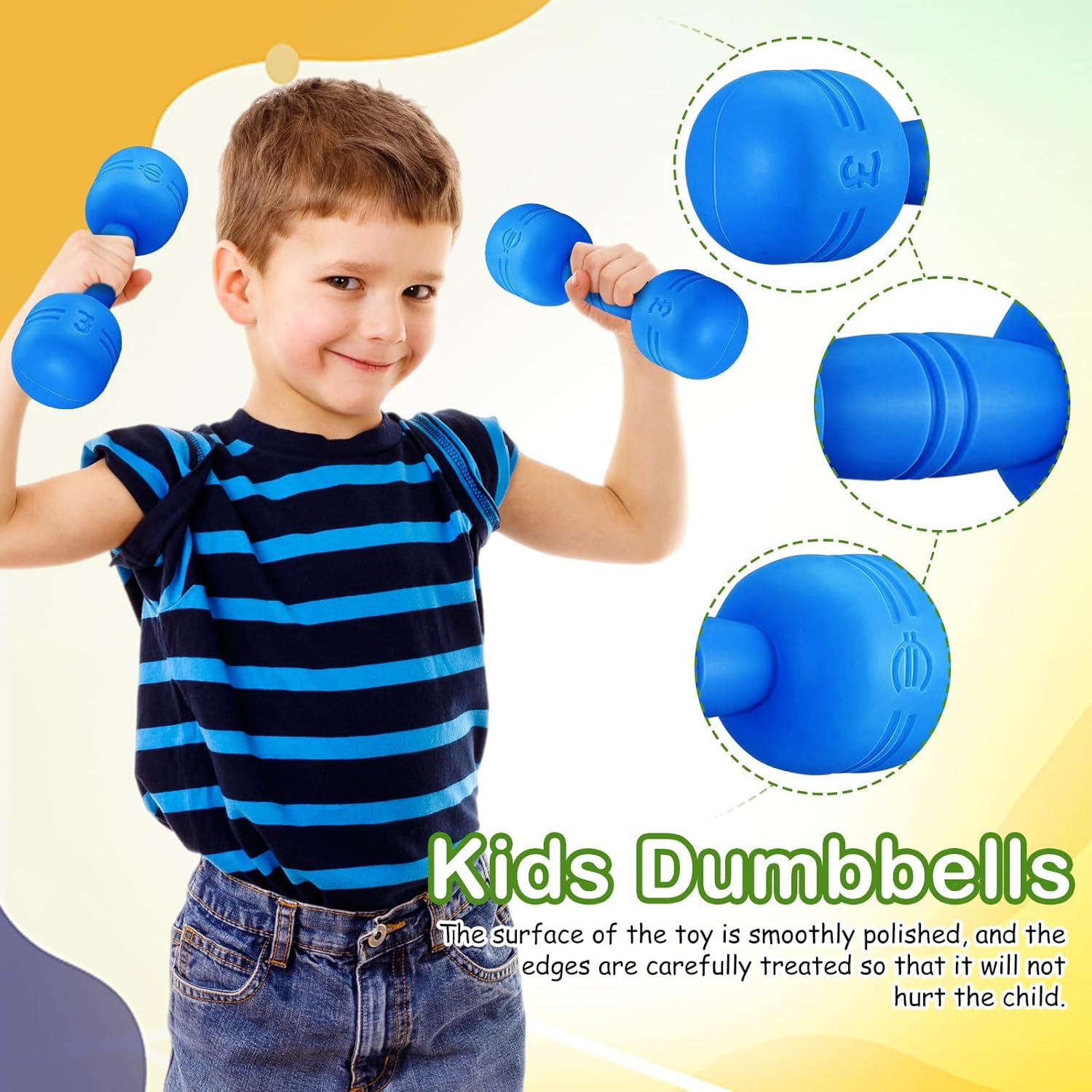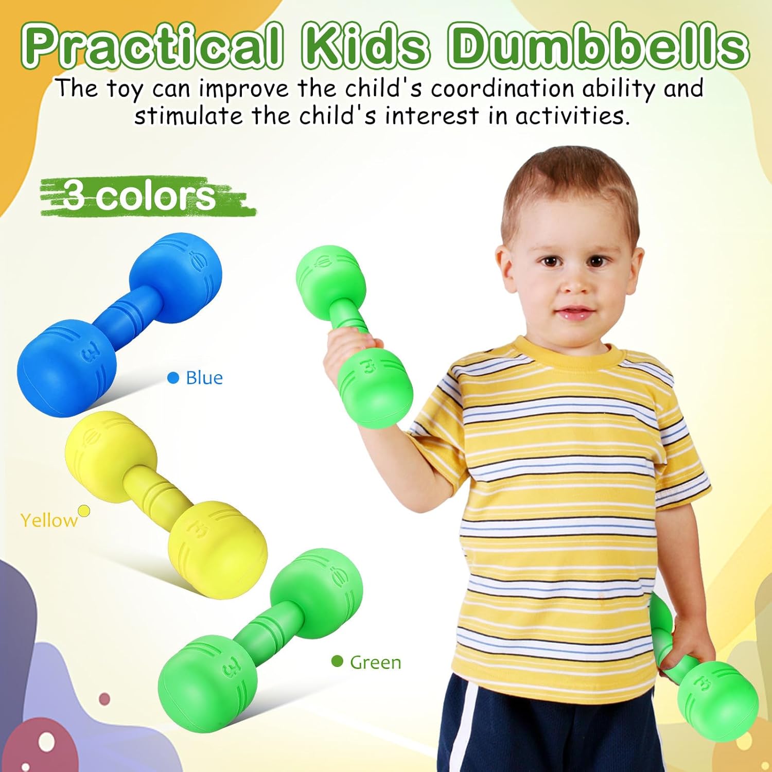 This set includes 3 pairs of small kids weights designed specifically for toddlers and young children Made from safe PVC material, these colorful dumbbells in yellow, blue, and green provide a fun and interactive way to encourage physical activity Each dumbbell measures approximately 6.7 x 2.0 x 2.0 inches, sized perfectly for little hands to grip comfortably