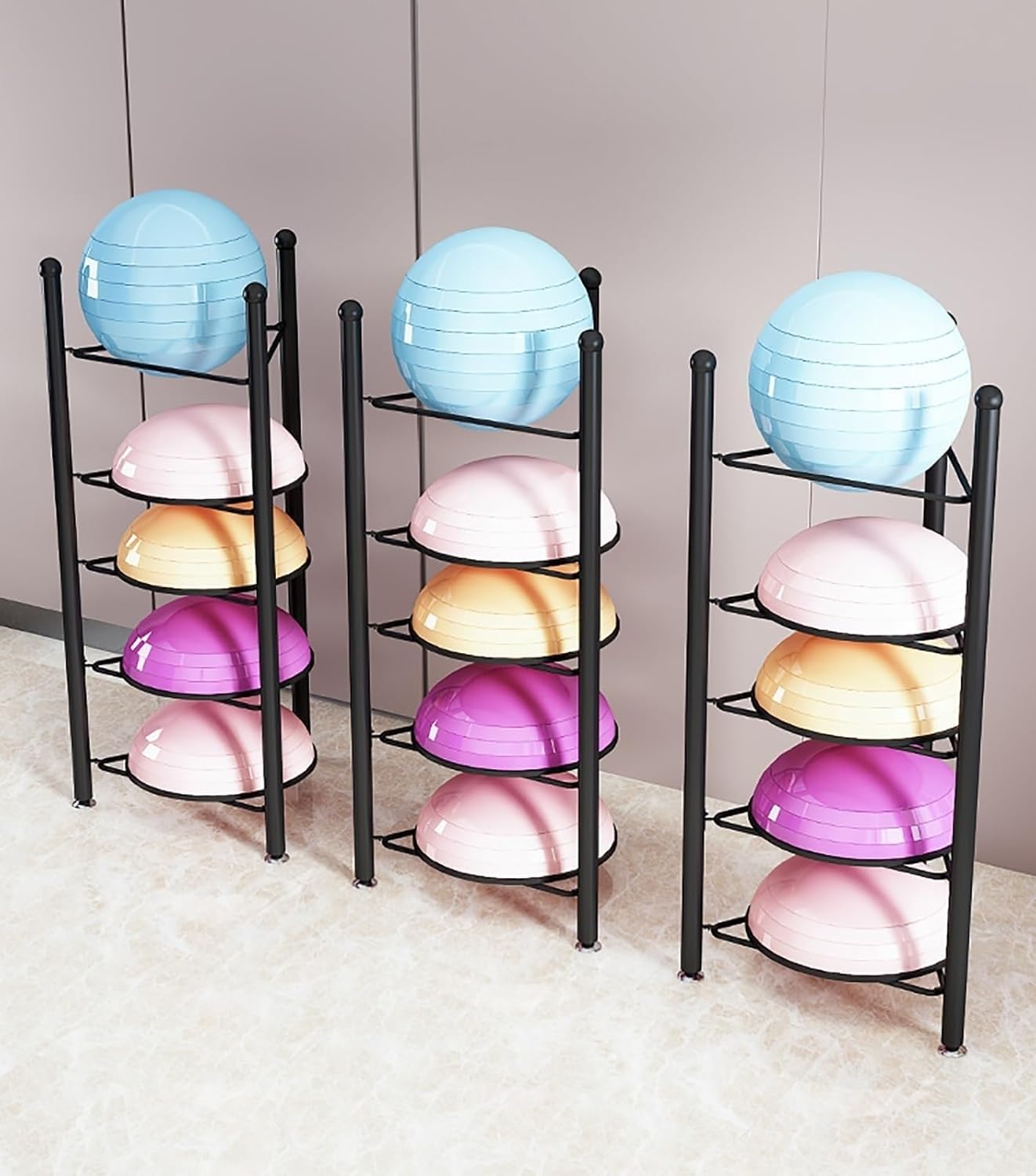 Large Capacity : The rack stores up to 3/5/6/7 half circle balance balls – (NOTE: No half circle balance balls included. Hardware Included).