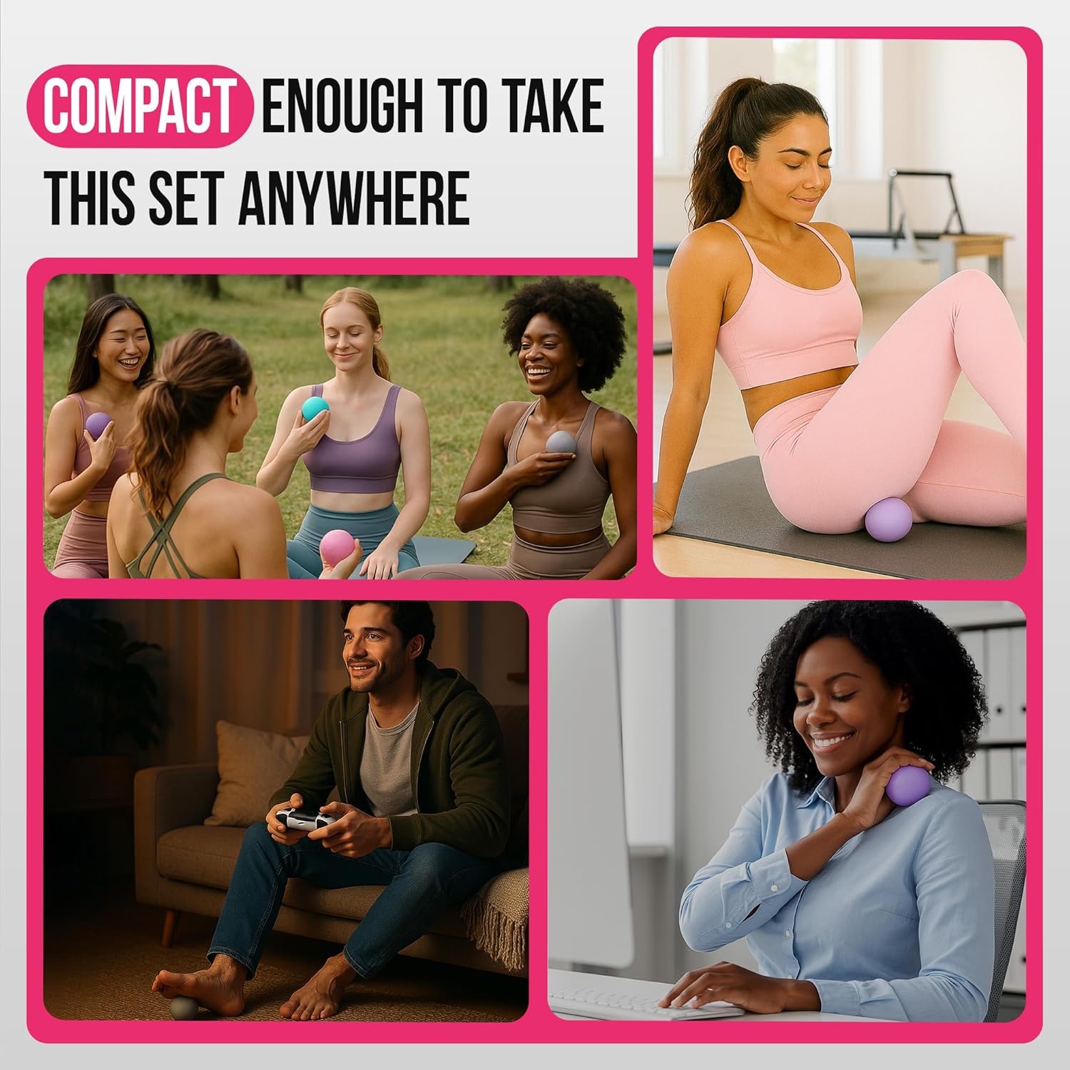 PORTABLE: These Massage Balls are lightweight and travel-friendly — perfect for use at home, in the office, or while traveling.