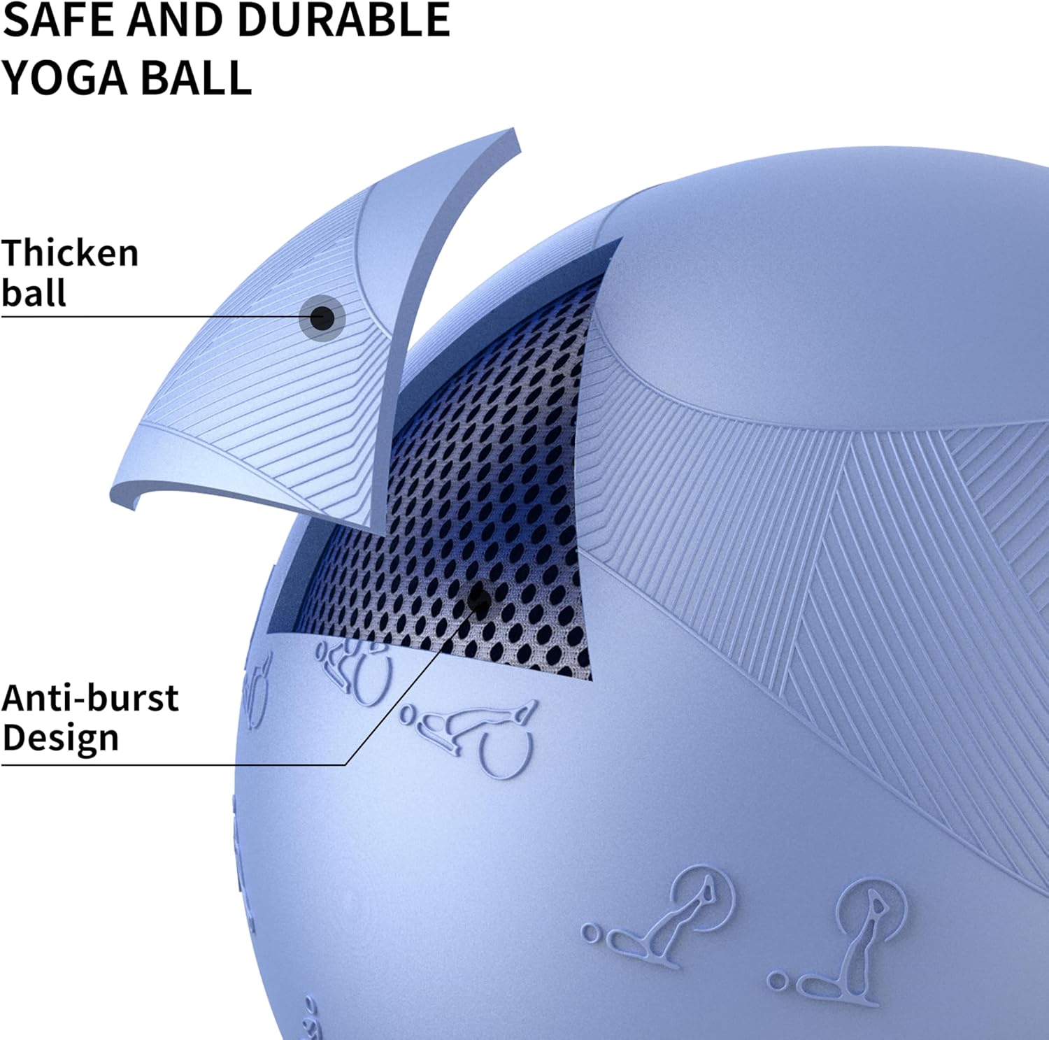 【Anti-Bursting】- Our yoga ball utilize a micro-porous foaming process, featuring a surface densely covered with foamed air pockets. When punctured by sharp objects, they deflate slowly without bursting, ensuring your safety.