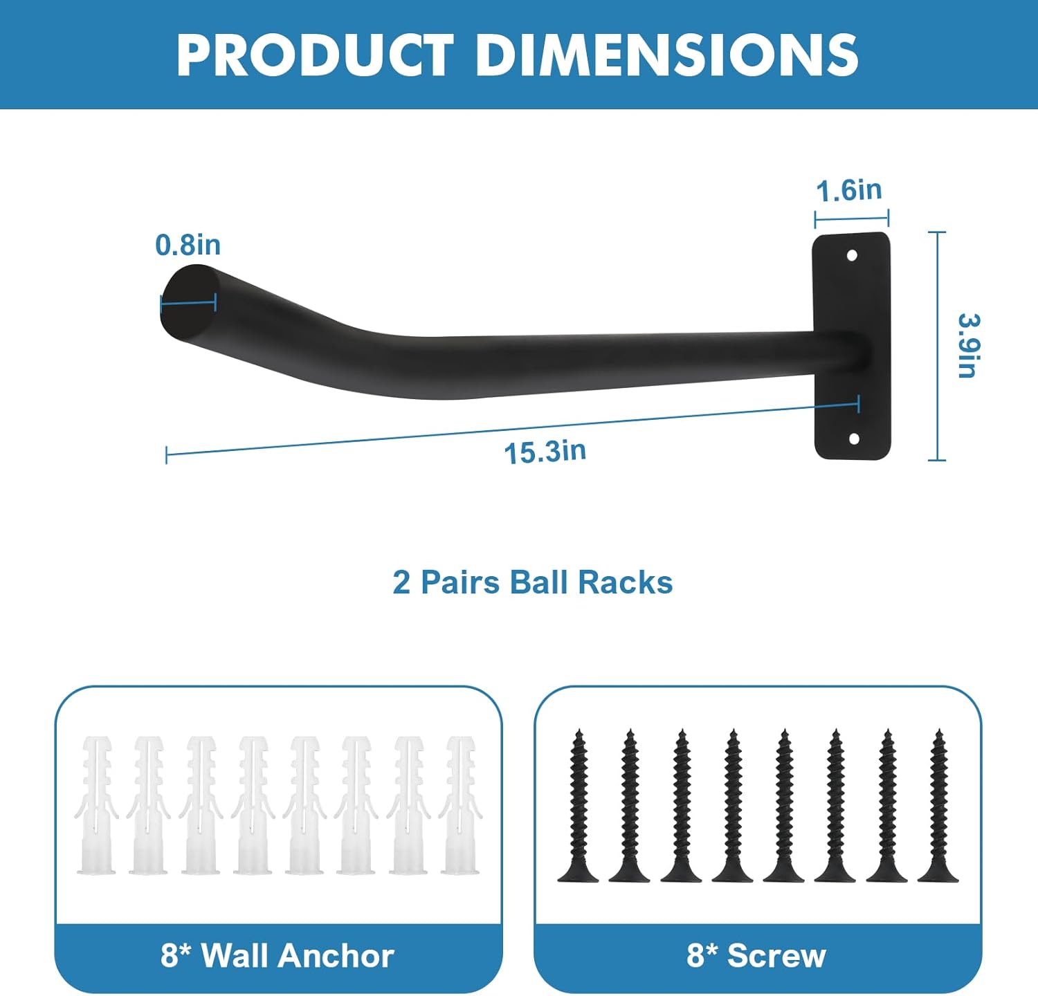 Versatile Storage Solution: The yoga ball holder length is 15.3 inches. The installation width can be determined according to the size of the ball. Suitable for a variety of ball types, including medicine balls, yoga balls, slam balls, basketballs, even larger items like balance bikes, surfboards, and ladders.