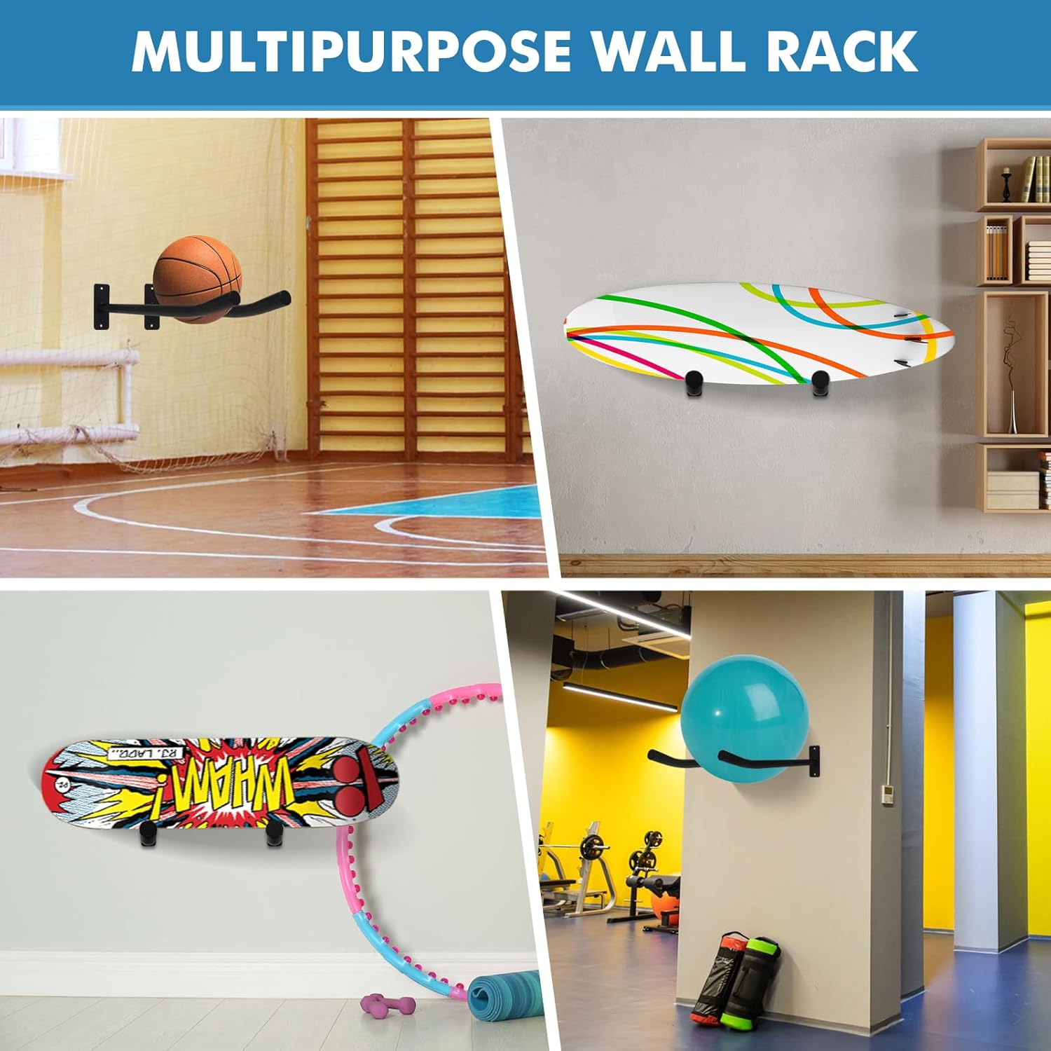 Sleek and Functional: The minimalist, modern design blends into any fitness or garage environment, providing a practical yet stylish solution to organize and display your exercise equipment.