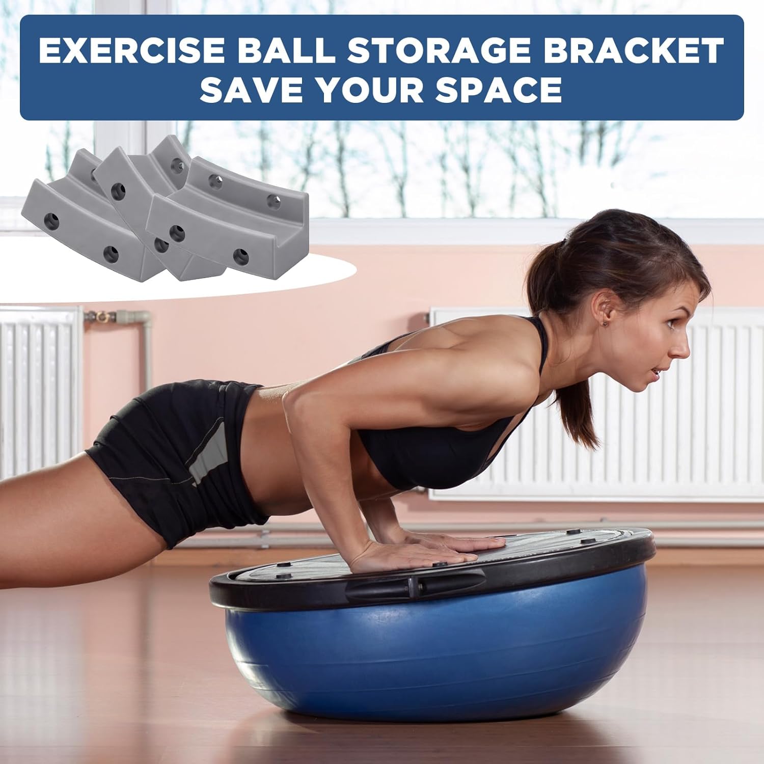 Wall-mounted Design: this crafted wall-mounted holder is specifically tailored for hemispherical fitness balls, offering a space-efficient storage solution that keeps your floor clear and organized
