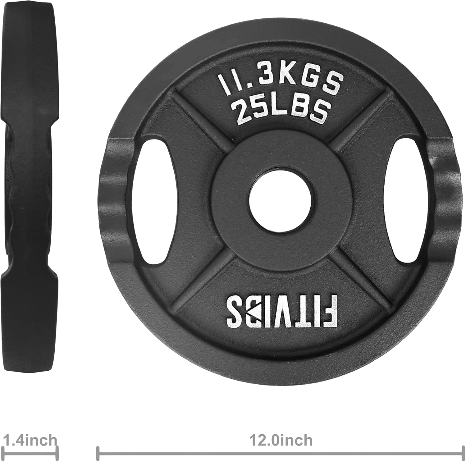 Fitvids Olympic 2-Inch Cast Iron Plate Weight Plate for Strength Training and Weightlifting, Two Hole Style, 25LB Pair