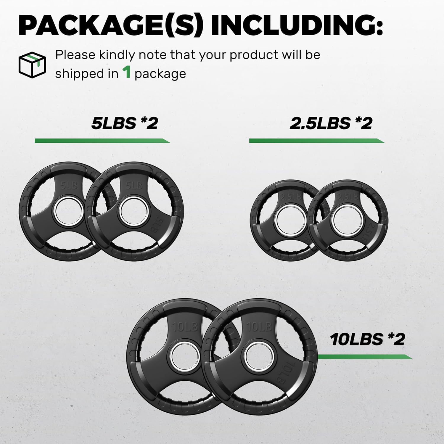 Comfortable and Convenient: Each weight plate includes 3 openings with textured strips for an easy and secure grip during loading and unloading. Clearly labeled in LB for quick recognition, these plates enhance convenience and comfort, even during sweaty sessions. This user-friendly design simplifies your setup, allowing you to transition smoothly between exercises and maximize efficiency