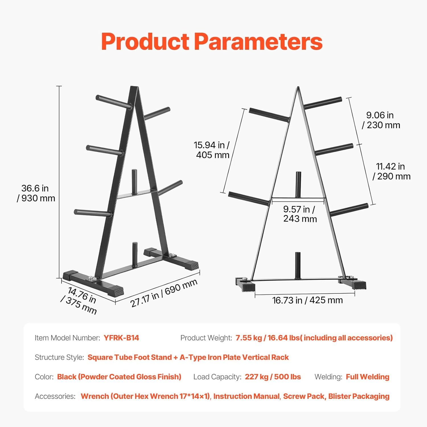 Strong and Safe Load Capacity: The sturdy structure of this weight plate rack can support up to 500 lbs, providing a solid foundation for your training without safety concerns when storing multiple heavy weight plates.