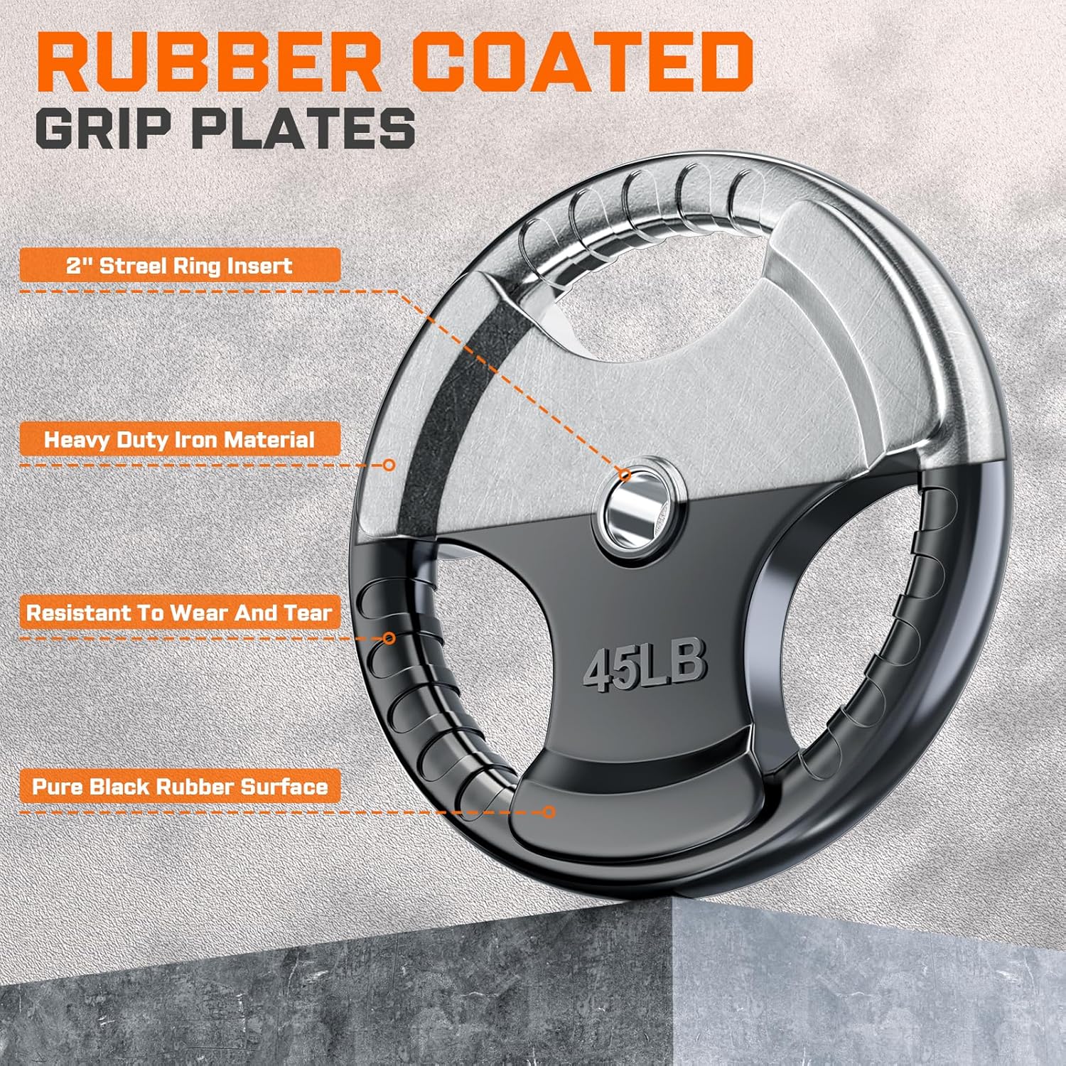 FEATURE – XDDIAS rubber plates have a solid iron core and slide rubber surface. This design can protect the floor from damage and ensure enough weight when you do exercise. The strong steel ring insert can help you assembly the barbell easily