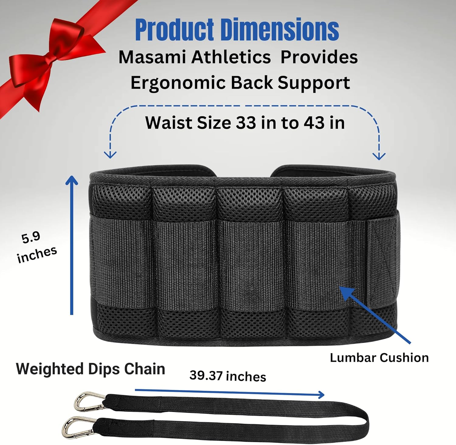 Elevate your strength training regimen with Masami Athletics’ revolutionary 2-in-1 Weight Lifting & Dips Belt and Gloves Set. This innovative all-in-one solution eliminates the hassle of managing multiple belts, combining the functionality of a weight lifting belt and a dips belt in a single, efficient design. Crafted with ergonomic precision, the belt provides exceptional comfort and steadfast back support, ensuring you can perform deadlifts and other weighted exercises with confidence and safety.