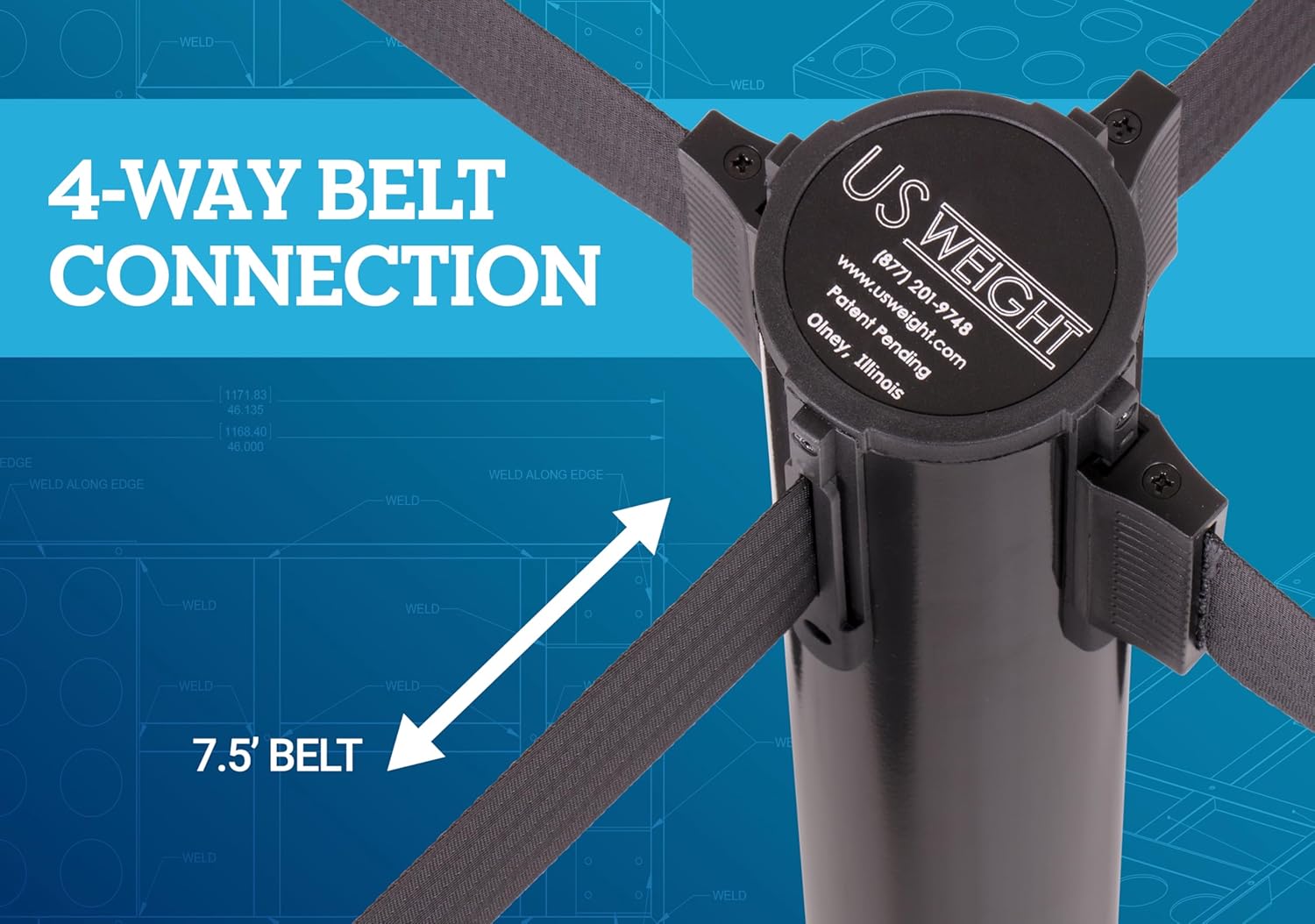 Safety comes first for US Weight, and this priority is executed flawlessly with the Premium Steel Stanchion with an extended 7.5-Foot Pro Retractable Belt. This classic steel stanchion is perfect for safely controlling crowds, directing the flow of foot traffic, or protecting a closed area for construction or cleaning. Made in the United States, the 38.5-inch tall steel post features a Sherwin Williams Pro coat finish. Unlike other stanchions that begin to wobble over time and require endless repair, the US Weight Premium Stanchion will never lean or require maintenance due to our patented Sta-Straight Technology. Designed with four points of contact under continuous tension plus a high-strength compression collar, this spring-tension system keeps the post upright even after extended use. This stanchion also features innovative QuikSecure 5-second setup and tear down that requires no tools for easy twist-and-lock assembly. This stanchion features a pro belt cassette with a dual-braking system for slow and safe belt return. The post also features 3 belt receptacles to facilitate a 4-way connection to other posts. These receptacles feature a spring safety locking button to keep the belt securely fastened to the post and prevent accidental belt retraction. The belt end is compatible with most major stanchion brands allowing you to connect to the posts you already have. The base of the Premium Stanchion is made with durable, scratch-resistant high density polyethylene and filled with Duracast, a very high strength concrete. On the bottom of the base are no-skid, non-marking rubber feet keeping the post in place. Easily customize these stanchions to fit your need with two different post and base colors and nine belt options to choose from. A wheeled stanchion cart holding up to 12 units is available, making for easy storage and deployment. Stanchion cart model #U2509. To advertise signage, the Premium Stanchion is only compatible with #2507 Sign Holder (sold separately). US Weight, located in Olney, Illinois, delivers unmatched quality, safety, and innovation with the Premium Stanchion.