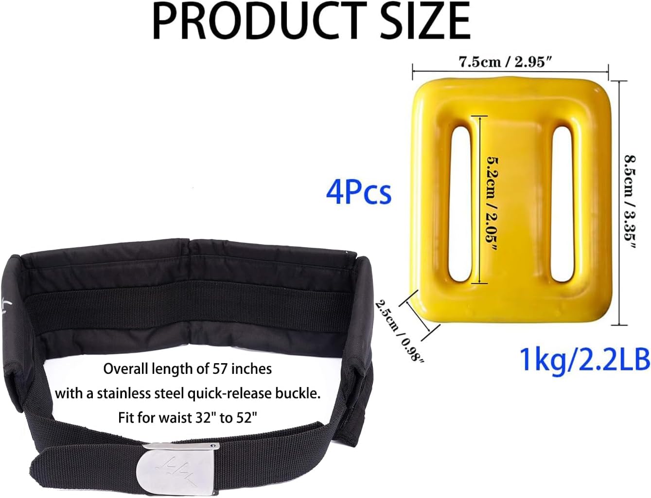 Beginners Comprehensive Dive Kit: This dive belt with weights includes not only 4 weights but also 1 four Pocket Scuba Weight Belt for a complete solution to your diving needs; this kit is designed to meet your diving needs and make your diving experience more convenient and enjoyable; practical kit for experienced divers or beginners