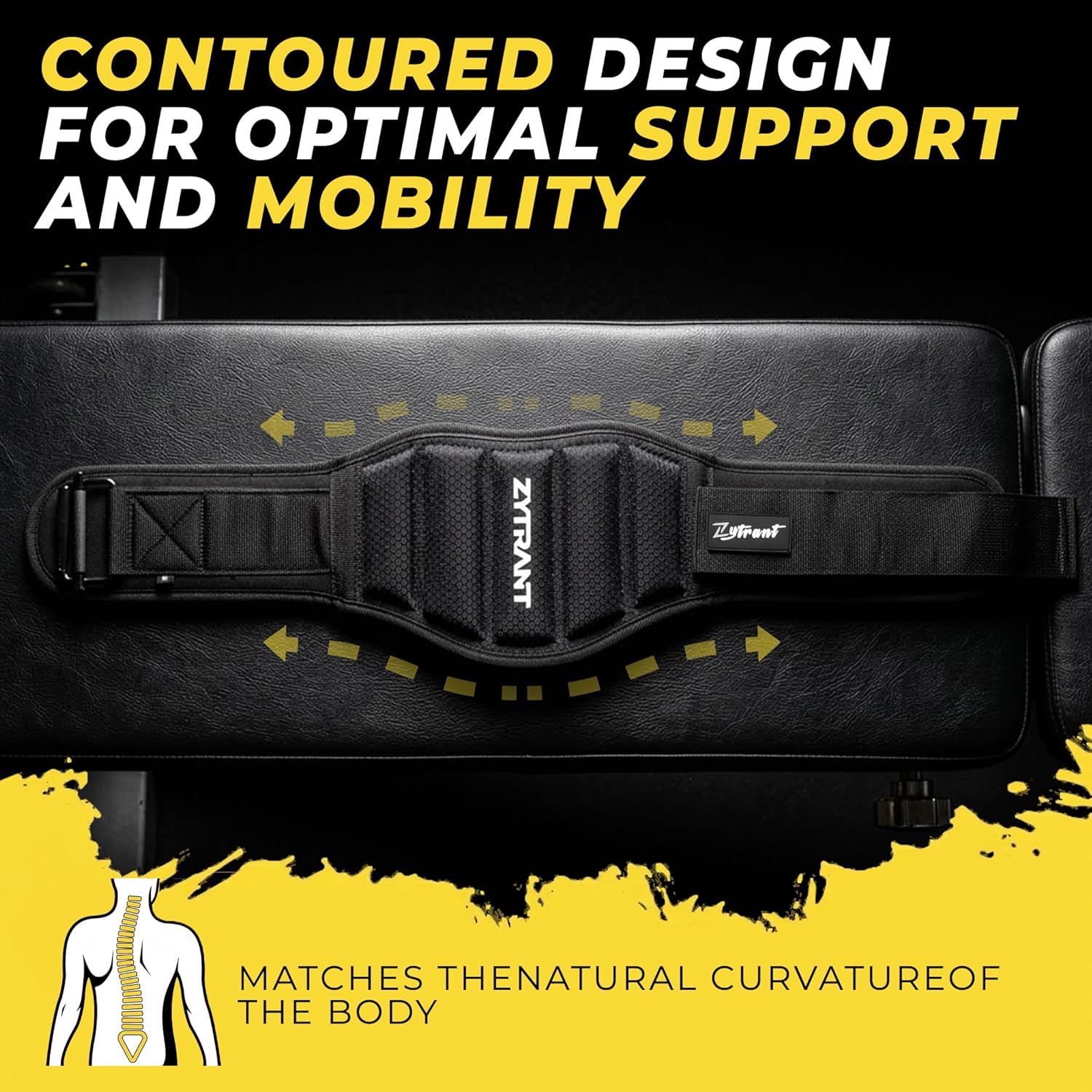 COMFORT FIT: Contoured design follows natural body curves while providing firm compression for confident lifting