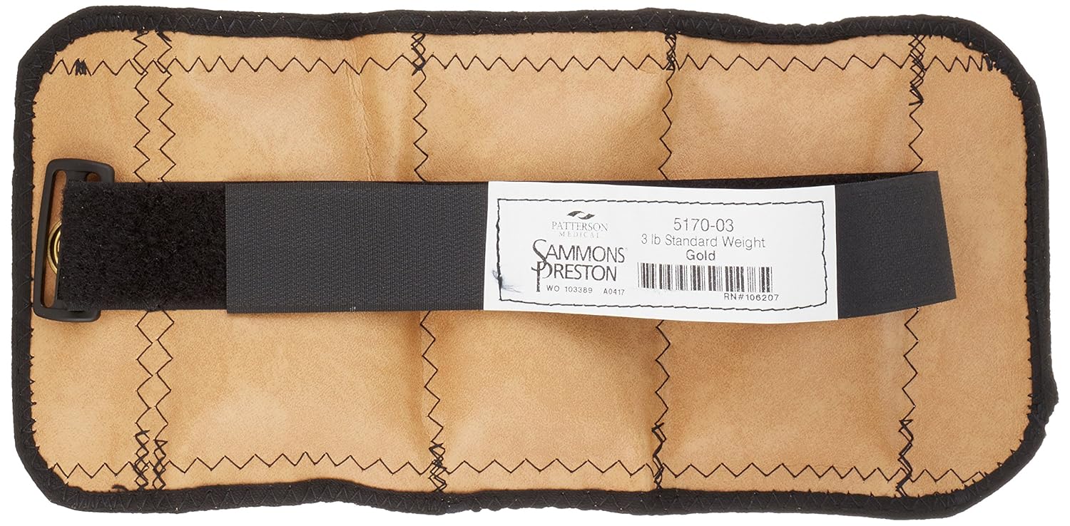 Sammons Preston Cuff Weight, 3 lb, Gold, Velcro Strap & D-Ring Closure, Grommet for Easy Hanging, Lead Free Steel Ankle & Wrist Weights, For Strength Building & Injury Rehab, Sold Individually