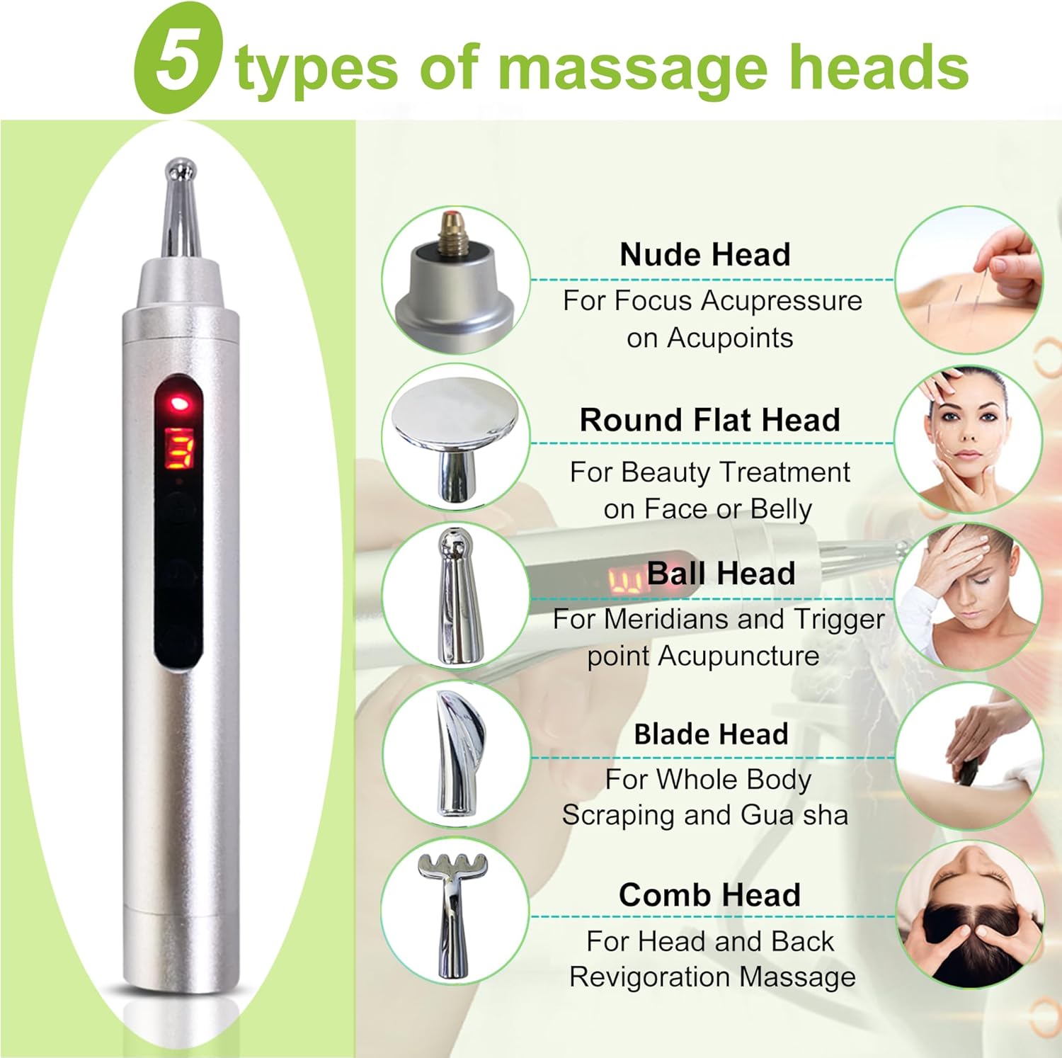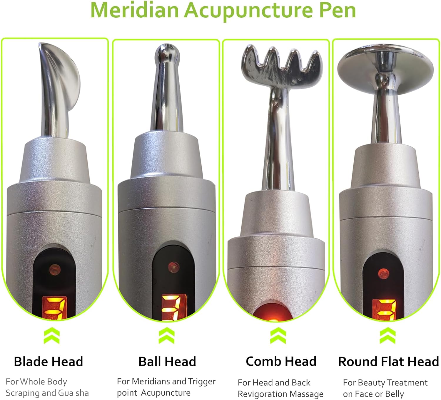Premium Meridian Energy Acupressure Pen – come with 4 different tips and 9 gears intensity for trigger-point therapy, motor points massage, and facial beautification.