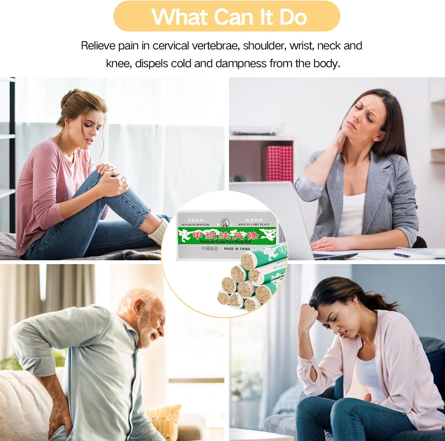 【Natural & Precious Materials】: Selected from natural premium quality mugwort planted in the hometown of famous Chinese doctors, without any impurities, handmade, with mild heat and strong penetration, its efficacy can penetrate deep into muscles. Relieve pain in cervical vertebrae, shoulder, wrist, neck and knee, regulate physiological discomfort caused by menstrual cycle and dispels cold and dampness from the body.