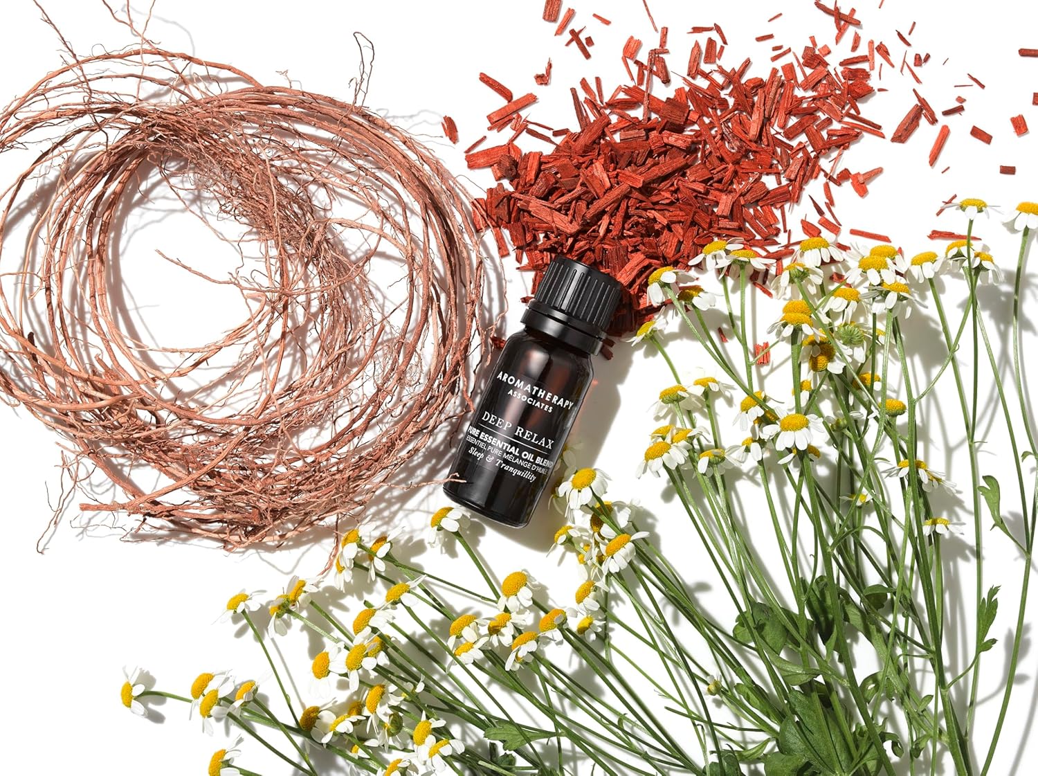 Feel Relaxed, Peaceful, Tranquil and Balanced. The Deep Relax blend is a vital part of the bedtime ritual. It combines deeply grounding vetivert, soothing chamomile and comforting sandalwood.