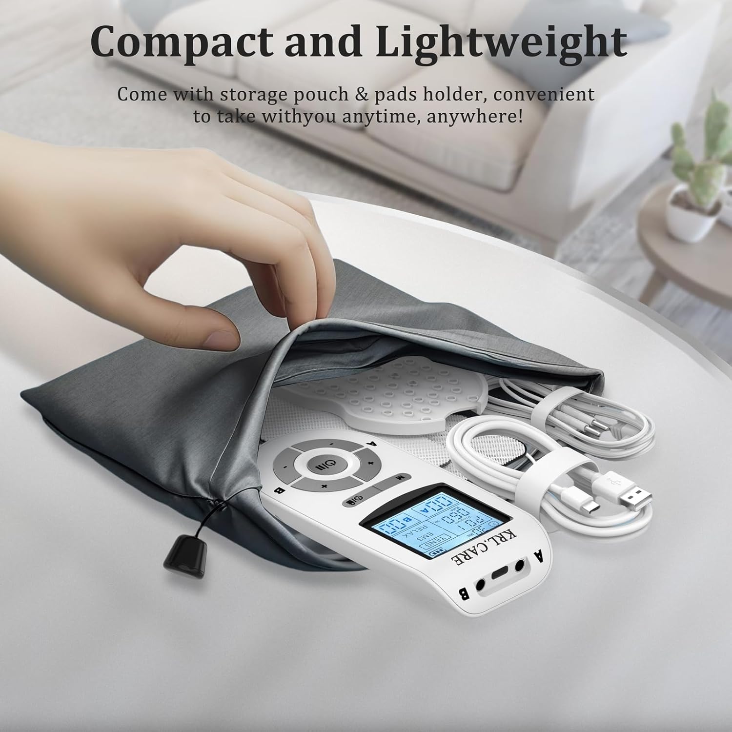 Due to its portable appearance, you can use it anytime at anywhere. KRL.CARE TENS unit can be put in your bag to take on the go, whether you are at home, in the gym, office, on your trip, etc.