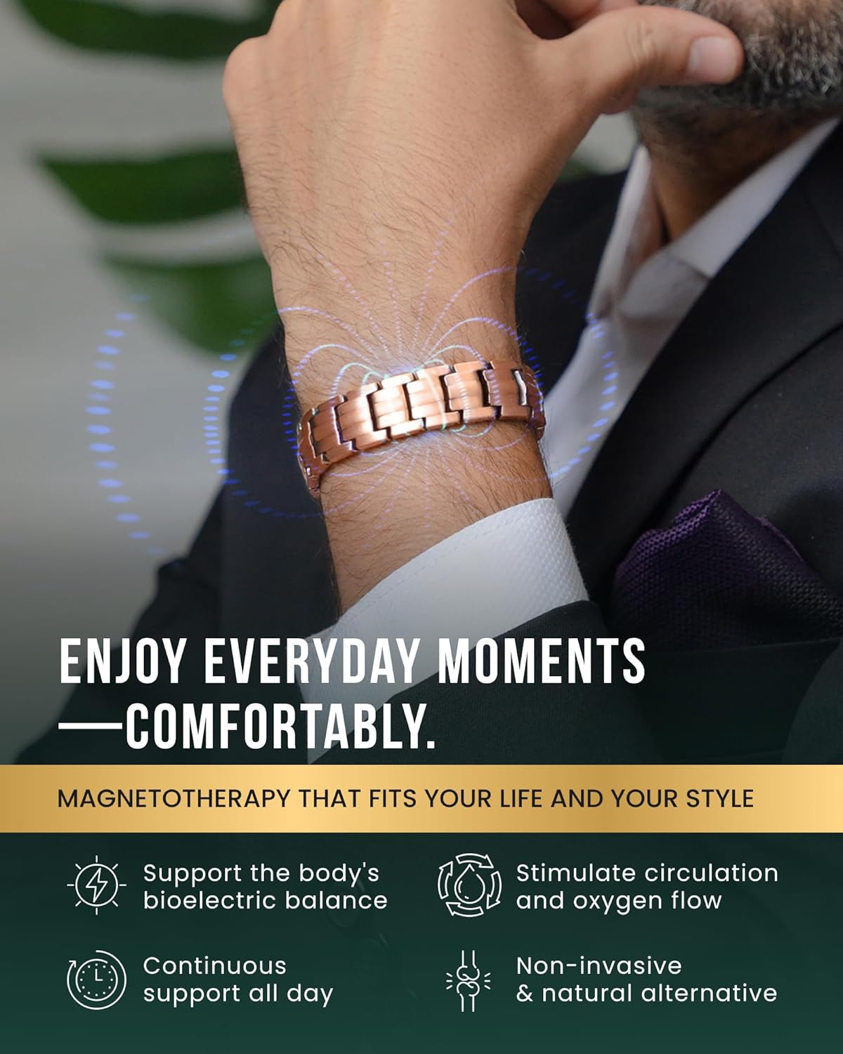 Ultimate Copper Wellness: Experience the superior strength of our patent-pending EllipseMAX copper magnetic bracelet for men, equipped with 5,000 Gauss magnets that offer next-level strength to support your daily well-being and performance.