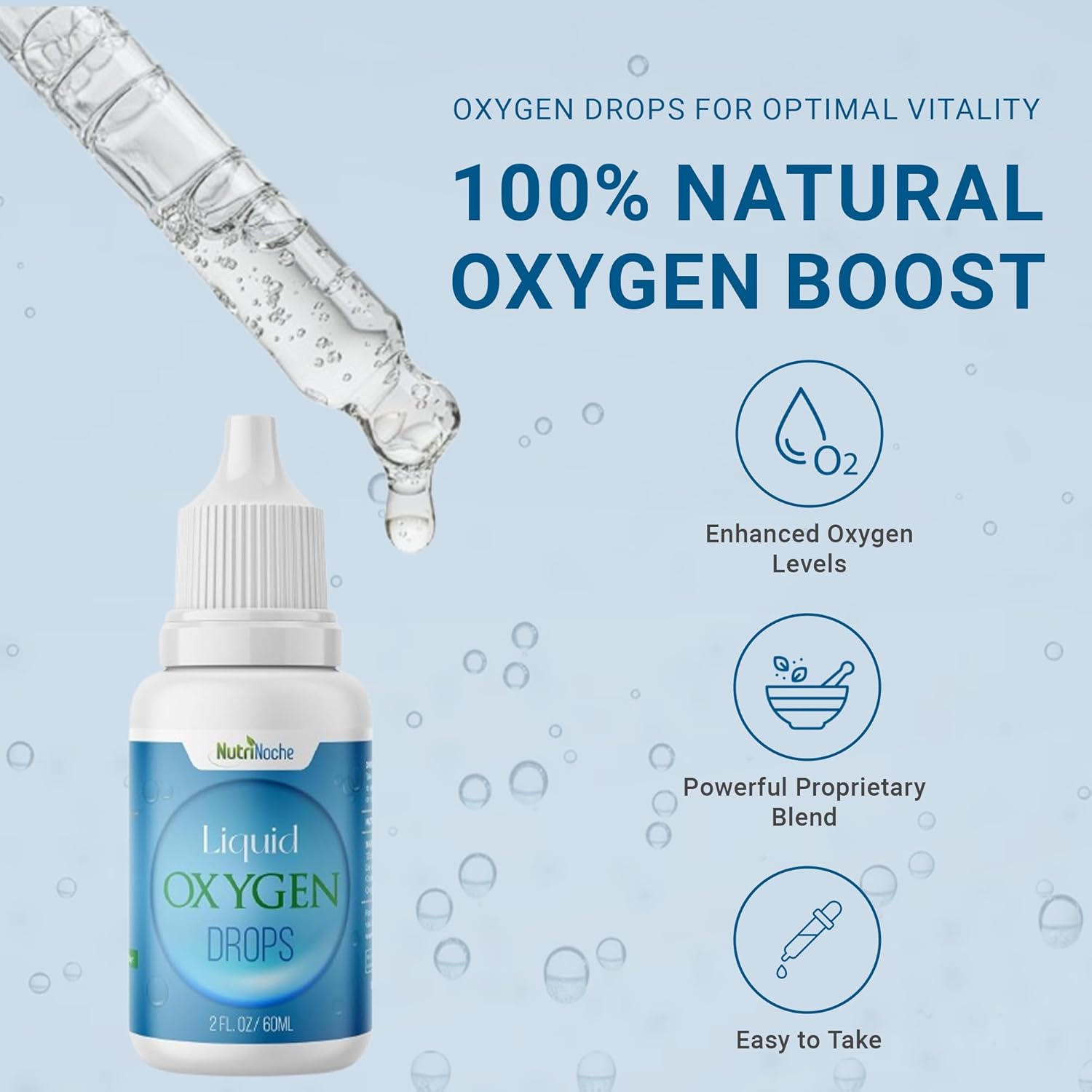 NutriNoche Liquid Oxygen Drops for Humans – High Potency Liquid Oxygen Supplement – Potent Oxygen Boost to Help Facilitate Energy Production – 2 oz Oxygen Drop Formula – Pure Oxygenated Water