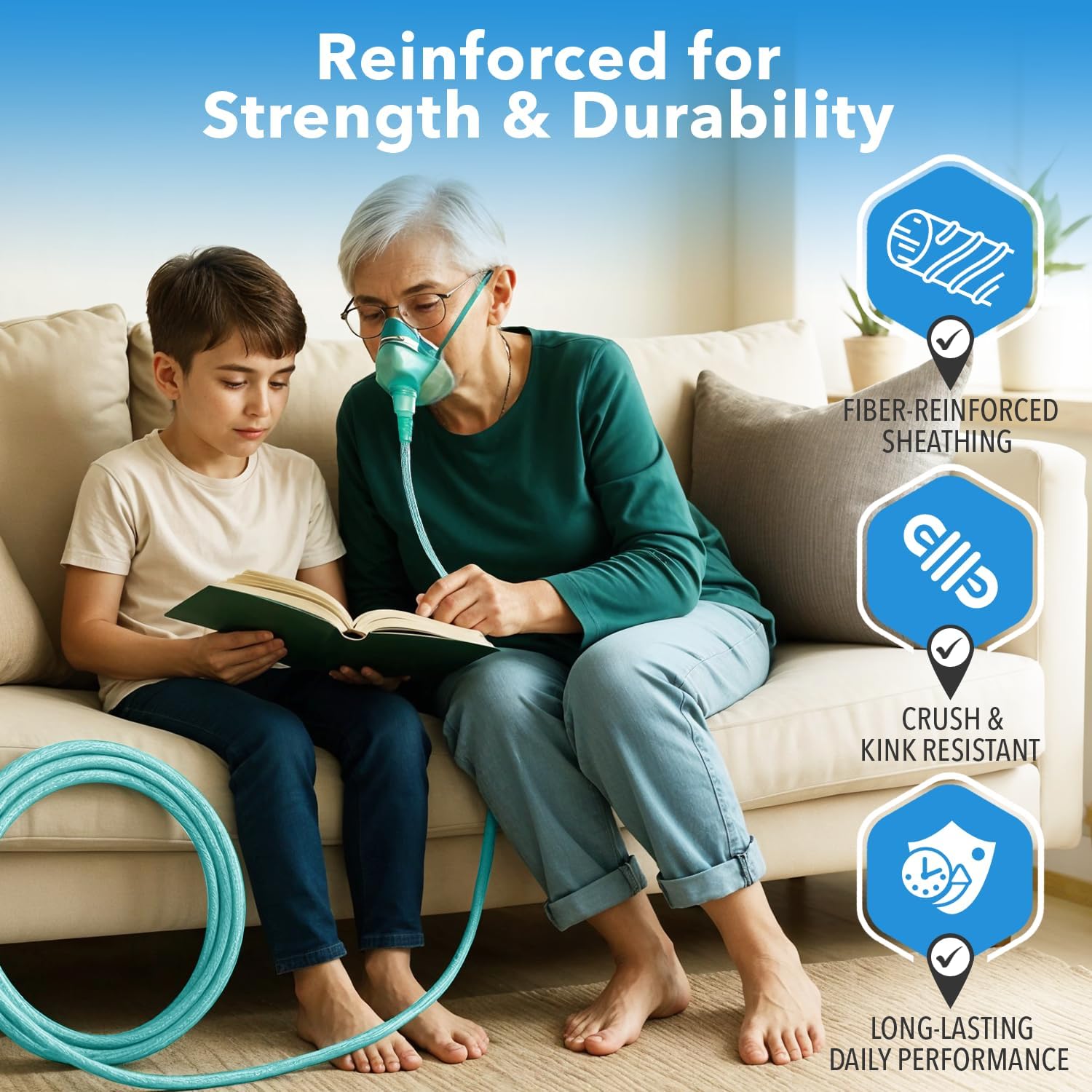 𝗥𝗘𝗜𝗡𝗙𝗢𝗥𝗖𝗘𝗗 𝗗𝗨𝗥𝗔𝗕𝗜𝗟𝗜𝗧𝗬: Our fiber-reinforced high flow oxygen tubing features a crush- and non-kinking oxygen hose design that maintains steady airflow even under pressure. The medical-grade materials provide long-lasting performance, ensuring reliable oxygen delivery for patients who depend on continuous therapy.