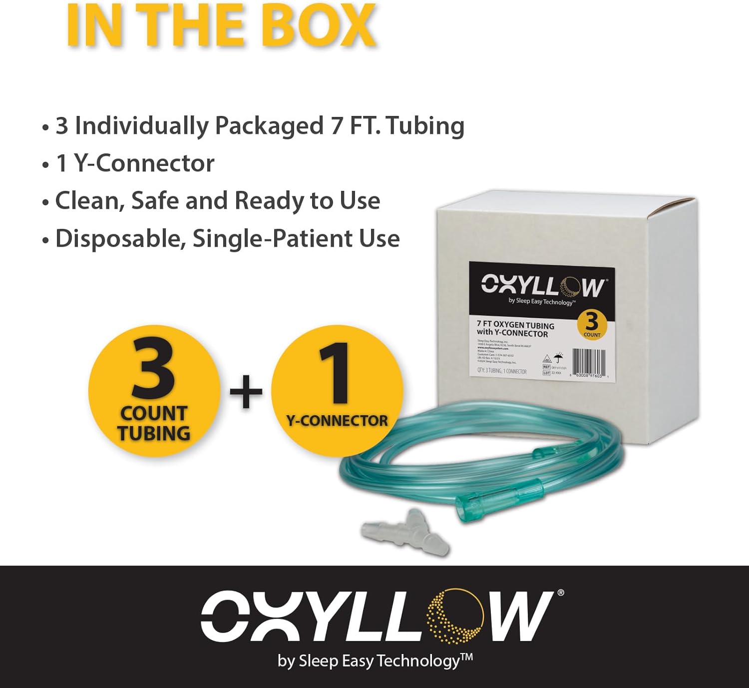 Elevate your nighttime oxygen therapy with the Oxyllow Accessory: Three 7ft Crush-Resistant Oxygen Tubing Set with Y-Connector. Designed as a perfect complement to the revolutionary Oxyllow System, this accessory ensures seamless and comfortable oxygen delivery throughout the night. Crafted with crush-resistant materials, the three 7ft oxygen tubing pieces offer durability and reliability, ensuring uninterrupted oxygen flow. The included Y-connector allows for easy integration with your existing oxygen setup, providing added convenience and flexibility. Whether you’re a side sleeper managing asthma, COPD, or simply seeking improved sleep quality, this accessory enhances your respiratory support with its lightweight and portable design. Say goodbye to cumbersome oxygen delivery methods and embrace a more comfortable and restful night’s sleep with the Oxyllow Accessory.
