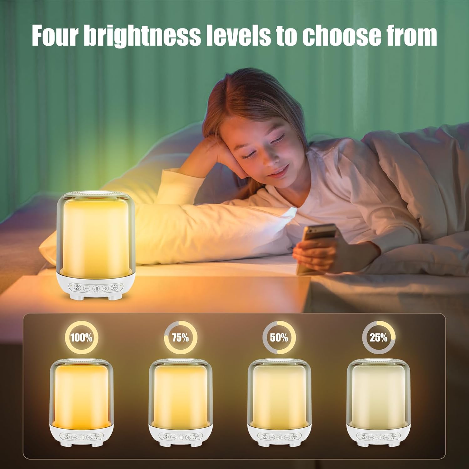 Brightness and Timing:The white light in sleep mode can be adjusted to different levels of brightness, able to adapt to different needs. It also has 15, 30, 60 minutes timer function, which does not disturb your sleep.