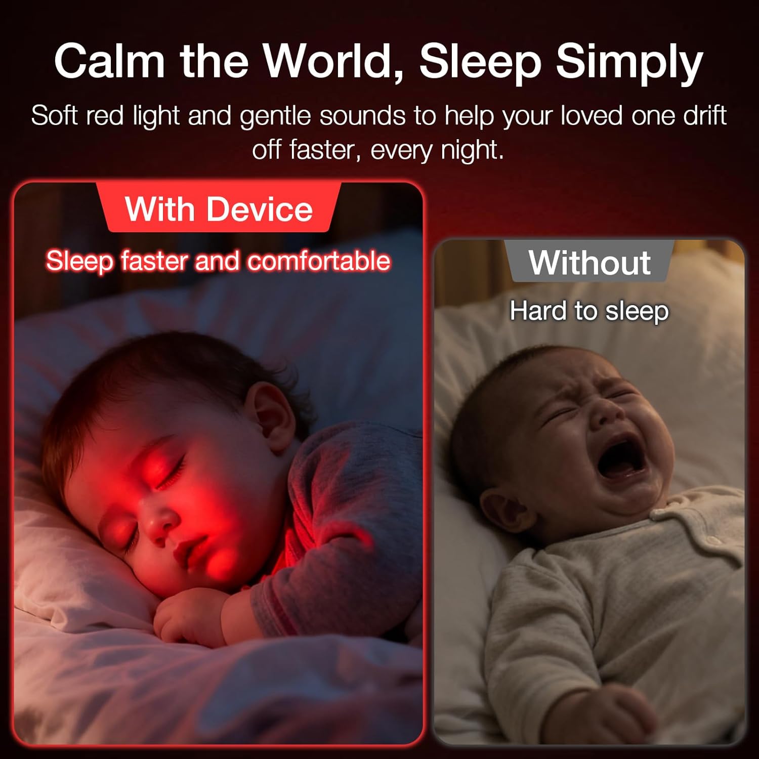 Smart APP Control: Controllable via APP, the red nightlight lets you freely adjust wavelength and brightness, set sleep alarms and countdowns, play white noise via Bluetooth, and check battery level—all for more versatile control and cozier sleep.