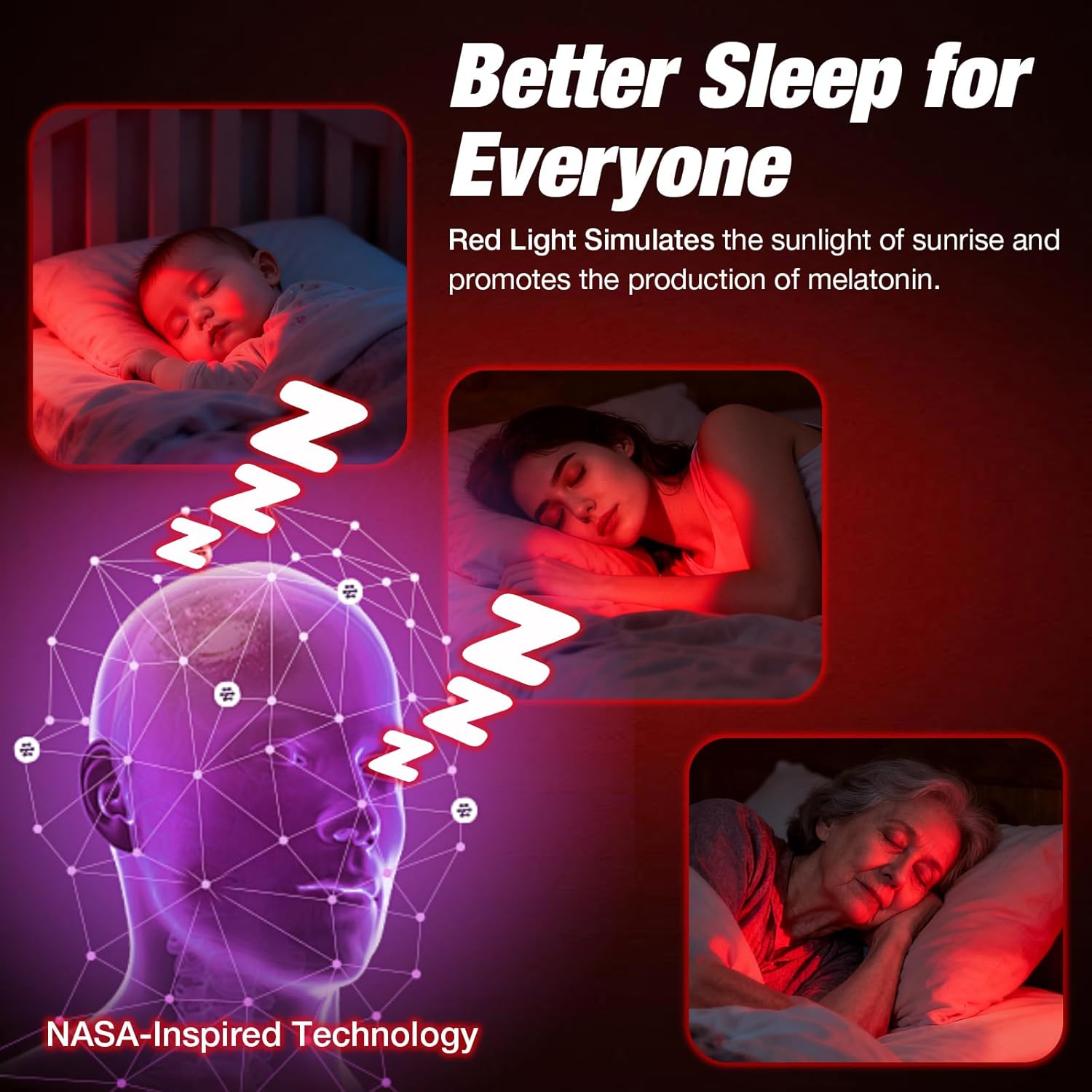 Upgraded Red Light For Sleep: The red lamp emits 5 sunset-simulating red wavelengths (620/630/650/670/690nm). It suppresses blue light day and night, boosts melatonin, eases eye fatigue, and reduces brain activity and emotional stress.