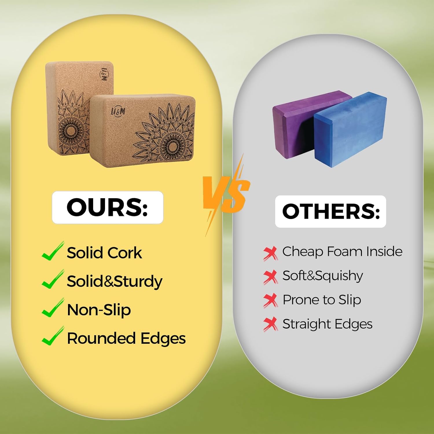 【Lightweight and Sturdy】Cork blocks have a firmness and support not found in foam blocks. Rounded edges provide maximum comfort, support and grip. Great for beginners to advanced yogis